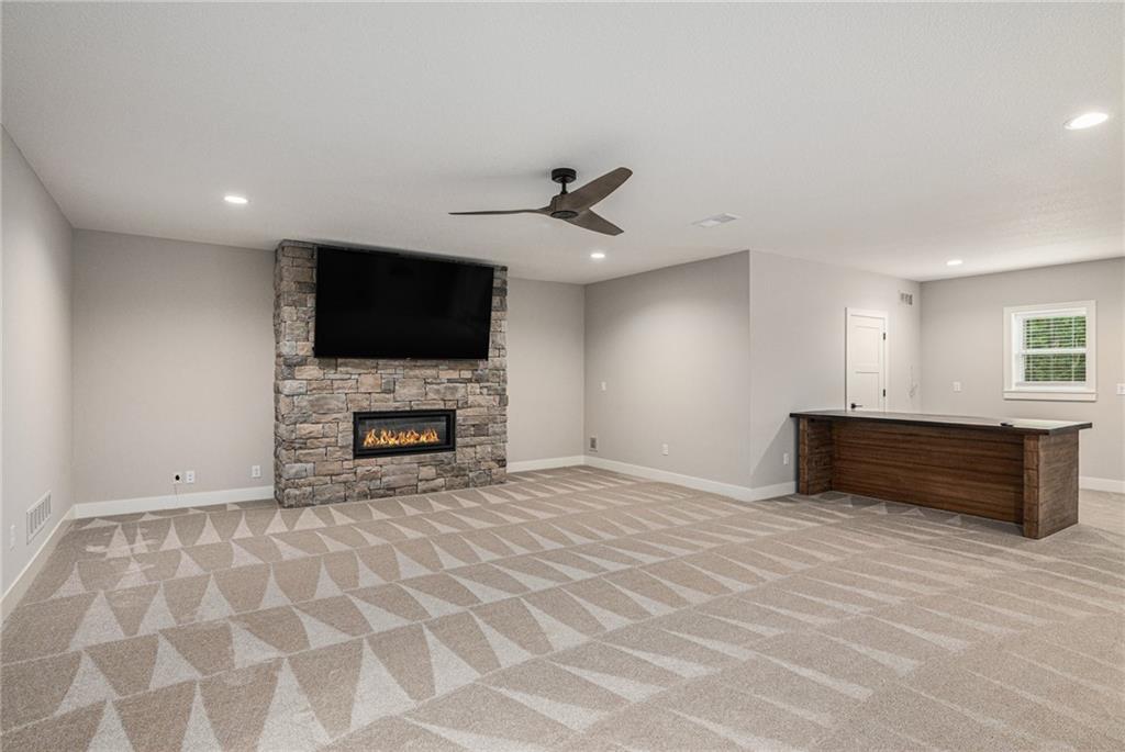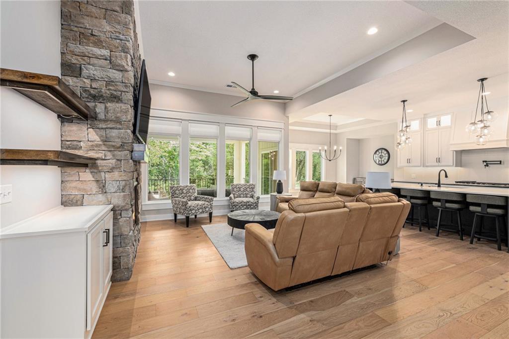 Stunning 4-Bedroom Reverse 1.5-Story Home Backing to Trees on a Spacious Lot- Less than TWO YEARS OLD! Welcome to this beautifully designed 3,800 sq ft reverse 1.5-story home in Parkside Reserve that combines luxury, functionality, and tranquility—all in one perfect package. Nestled on a generous, tree-lined lot, this 4-bedroom, 3 1/2 bath gem offers the privacy and peaceful surroundings you’ve been dreaming of. Step inside at zero entry level to discover a spacious open floor plan with soaring ceilings, a gorgeous stone fireplace, and thoughtfully designed living areas. The chef’s kitchen is a true showstopper, featuring a massive 6-foot refrigerator, convection oven/microwave, gas cook top, pot filler, and a walk-in pantry with a dedicated coffee bar and second oven —perfect for morning routines or entertaining in style. The main level boasts a large primary suite with spa-inspired ensuite bath with a freestanding tub and a spacious shower with dual shower heads, enormous walk-in closet that is directly connected to the spacious laundry room with a sink, plus a second bedroom or home office. Downstairs, the finished lower level includes a second stone fireplace, two additional bedrooms, a full bath, a half bath, and a large recreation space—ideal for a home theater or game room. A suspended 3-car garage offers ample storage and workshop space, while the covered deck and walk-out patio provide stunning views of the wooded backyard. Additional features: * Hardwood floors * Upgraded lighting * Upgraded Energy-efficient appliances * Modern fixtures * Custom cabinetry * Professional landscaping * Future community pool and clubhouse, Pickleball courts, playground, sports court, and outdoor gathering place with fireplace. * Subdivision has 40+ acres of green space designed as a continuation of Heritage Park. This home is a rare find—luxury living with room to breathe. Schedule your private tour today!