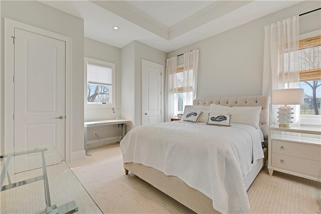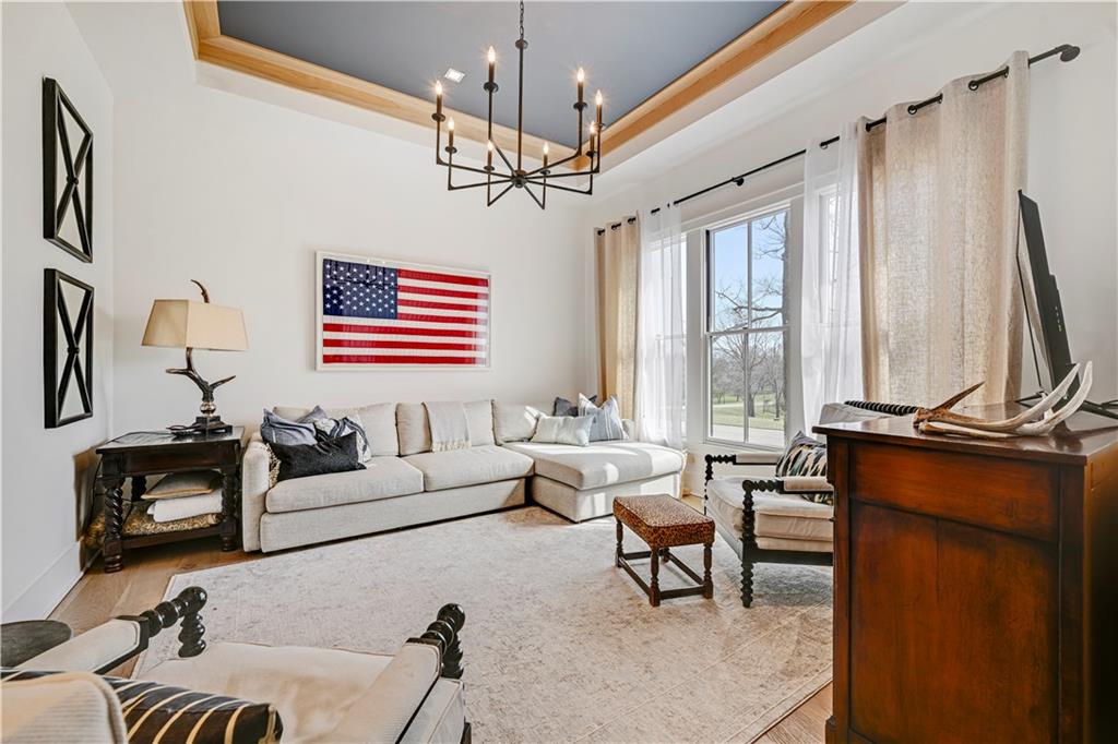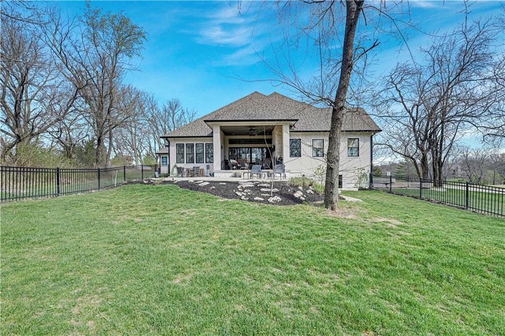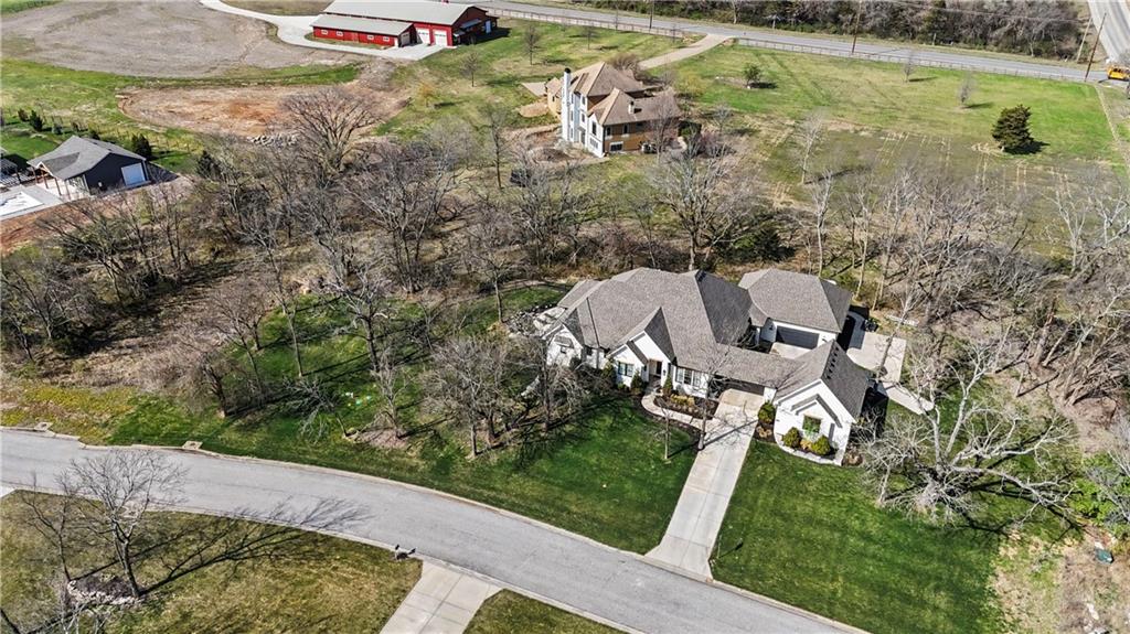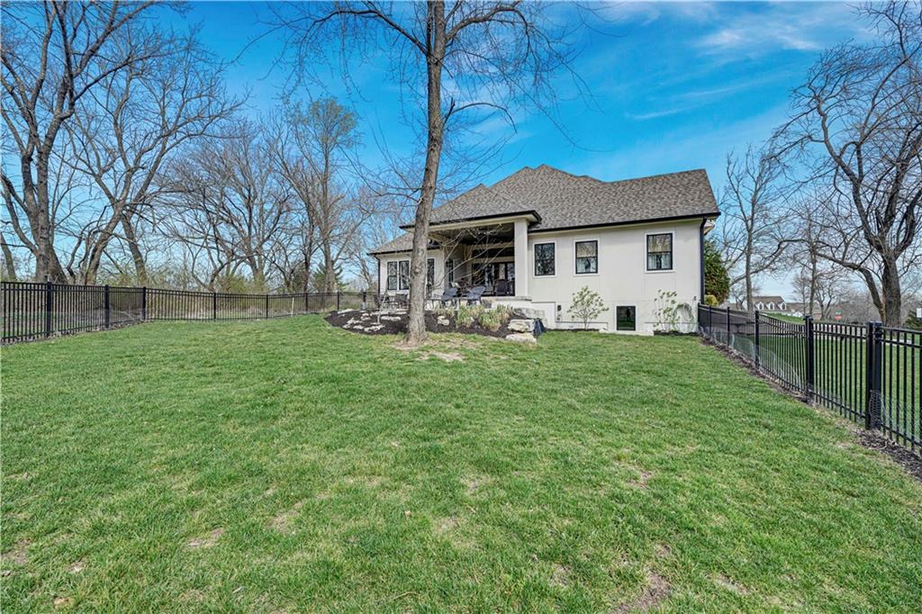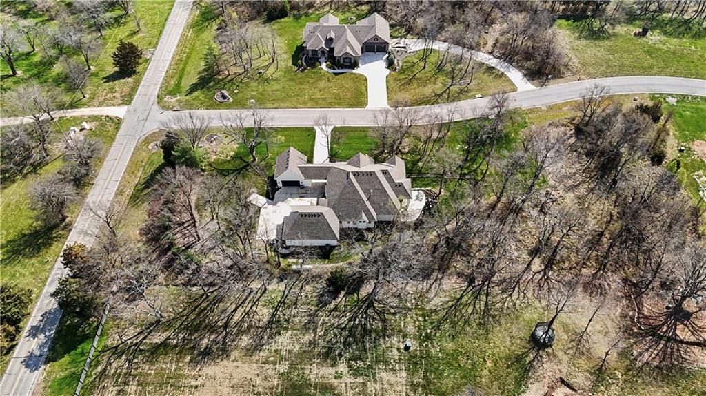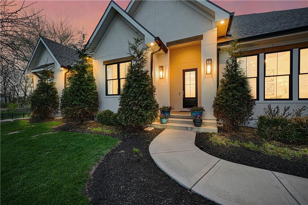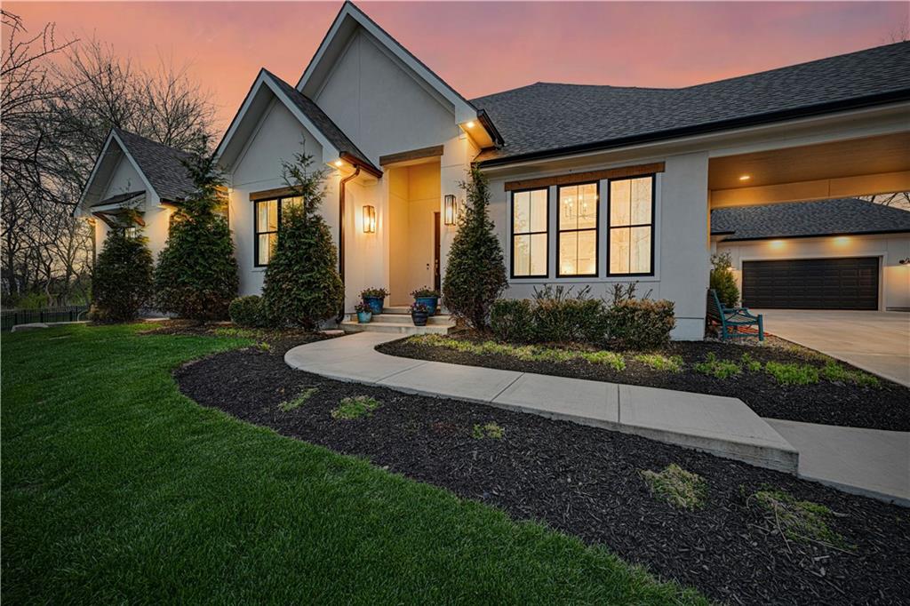 Luxury living in the sought-after **Blue Valley School District** — where location truly is everything. Builder's personal residence, situated on **2 scenic acres of beautifully treed, fenced property**. This stunning former spec home offers 4 spacious bedrooms and 4.5 baths in a beautifully designed ranch floor plan. The main level features a luxurious primary suite complete with separate his-and-hers bathrooms for the ultimate private retreat, plus a convenient laundry room located within the primary suite. Each additional bedroom includes its own en-suite bath, offering comfort and privacy for family and guests. The kitchen is a showstopper, showcasing a large statement island, gas cooktop, double sinks, premium Thermador appliances and an spacious butler's pantry — perfect for entertaining. A second laundry room is thoughtfully located in the mudroom just off the kitchen, adding everyday functionality. The home includes a 2-car attached garage plus a 2-car detached garage connected by a porte cochere. A secondary stairwell in the garage provides direct access to the expansive 3,500 sq ft unfinished daylight basement — ready for you to design and customize to your needs. The charming carriage house offers ideal space for a private office, guest quarters, or multi-generational living. Enjoy peaceful views of nature from the covered patio just off the living room. All this, just minutes from highways, shopping, and restaurants — a rare combination of luxury, space, and convenience.