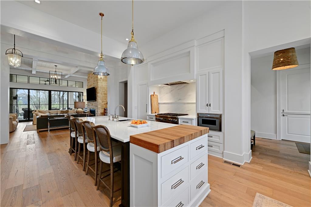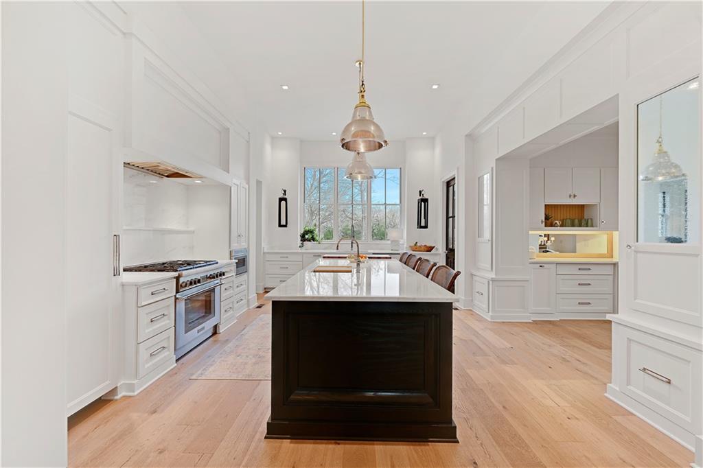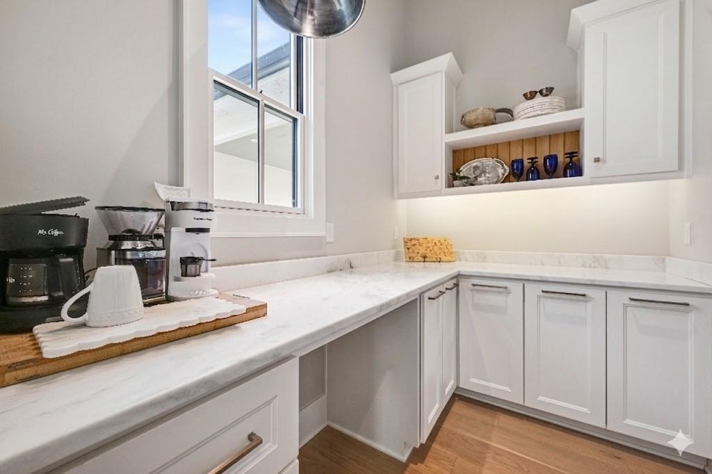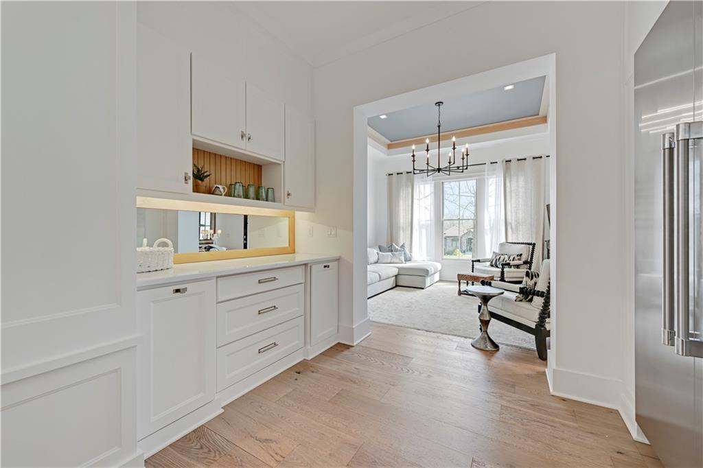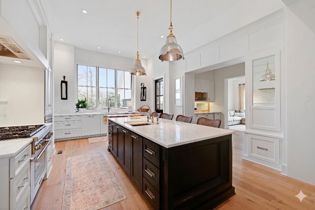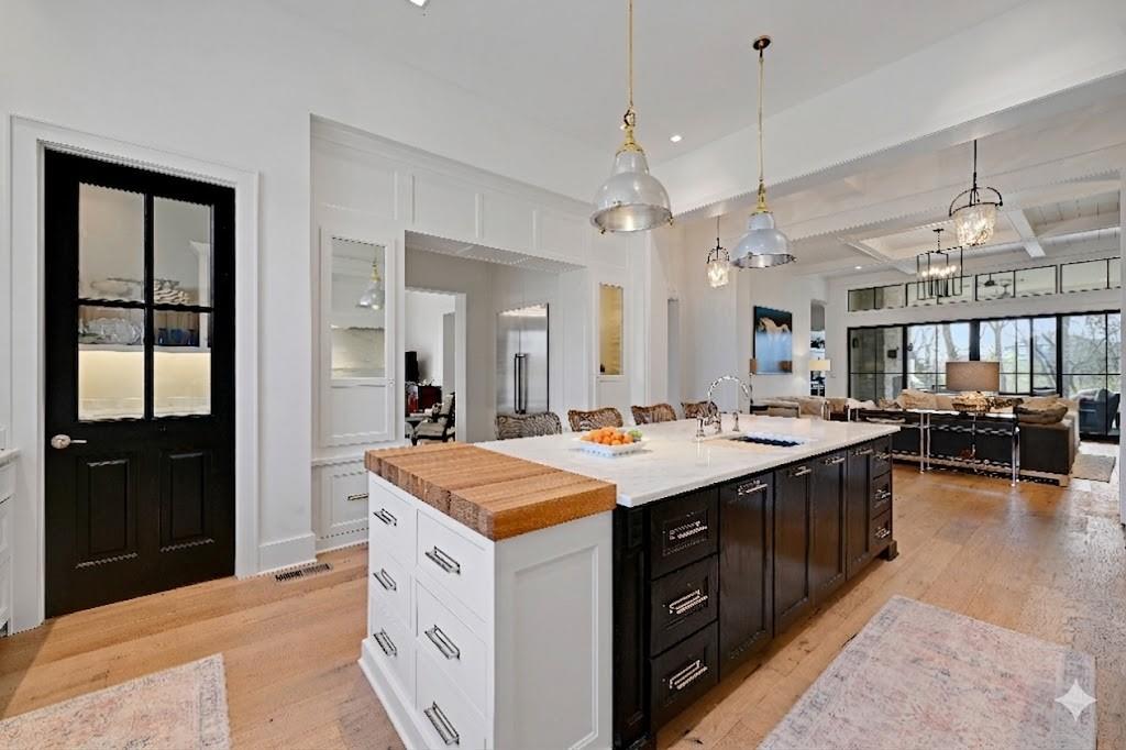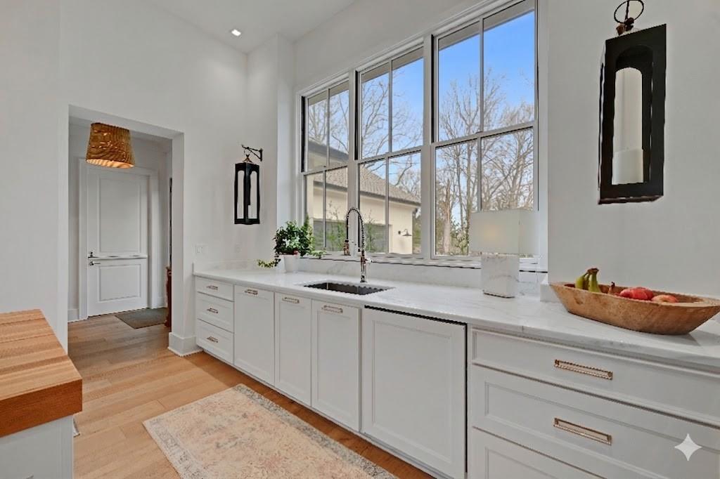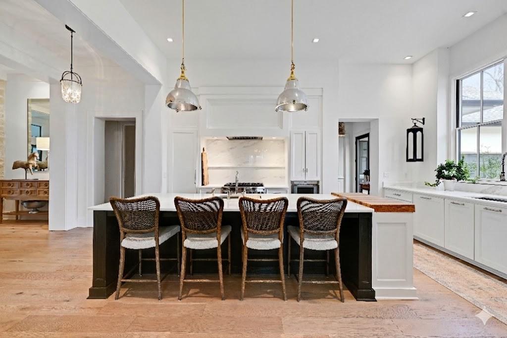 Luxury living in the sought-after **Blue Valley School District** — where location truly is everything. Builder's personal residence, situated on **2 scenic acres of beautifully treed, fenced property**. This stunning former spec home offers 4 spacious bedrooms and 4.5 baths in a beautifully designed ranch floor plan. The main level features a luxurious primary suite complete with separate his-and-hers bathrooms for the ultimate private retreat, plus a convenient laundry room located within the primary suite. Each additional bedroom includes its own en-suite bath, offering comfort and privacy for family and guests. The kitchen is a showstopper, showcasing a large statement island, gas cooktop, double sinks, premium Thermador appliances and an spacious butler's pantry — perfect for entertaining. A second laundry room is thoughtfully located in the mudroom just off the kitchen, adding everyday functionality. The home includes a 2-car attached garage plus a 2-car detached garage connected by a porte cochere. A secondary stairwell in the garage provides direct access to the expansive 3,500 sq ft unfinished daylight basement — ready for you to design and customize to your needs. The charming carriage house offers ideal space for a private office, guest quarters, or multi-generational living. Enjoy peaceful views of nature from the covered patio just off the living room. All this, just minutes from highways, shopping, and restaurants — a rare combination of luxury, space, and convenience.