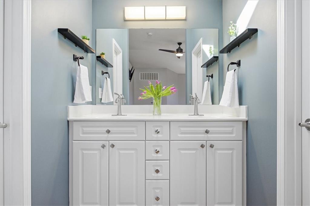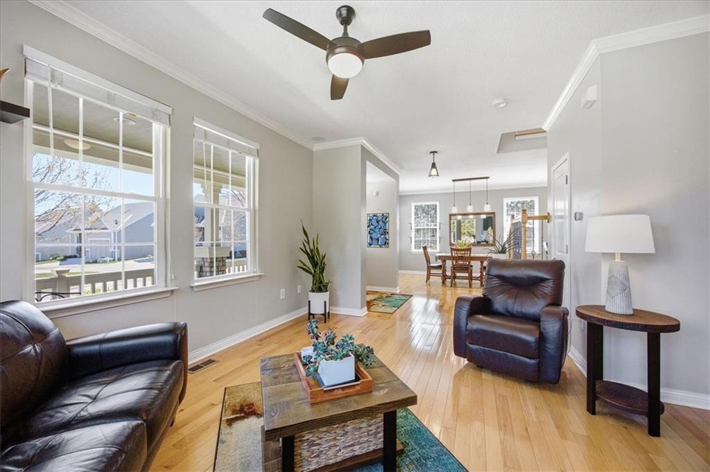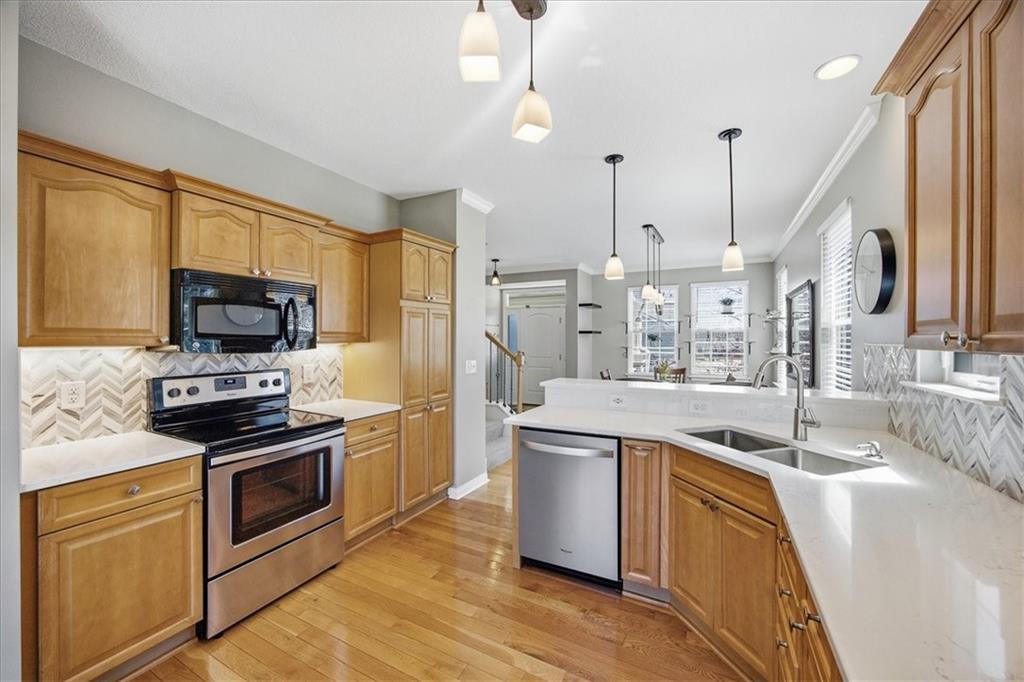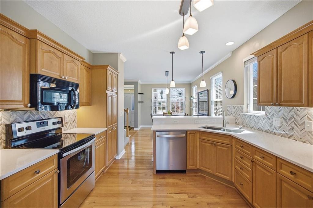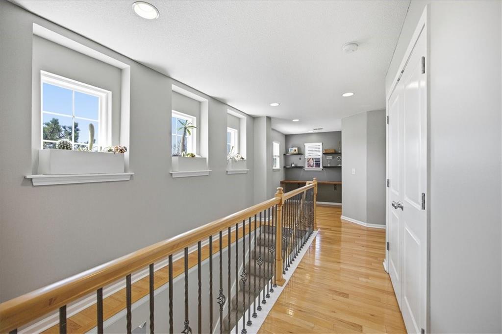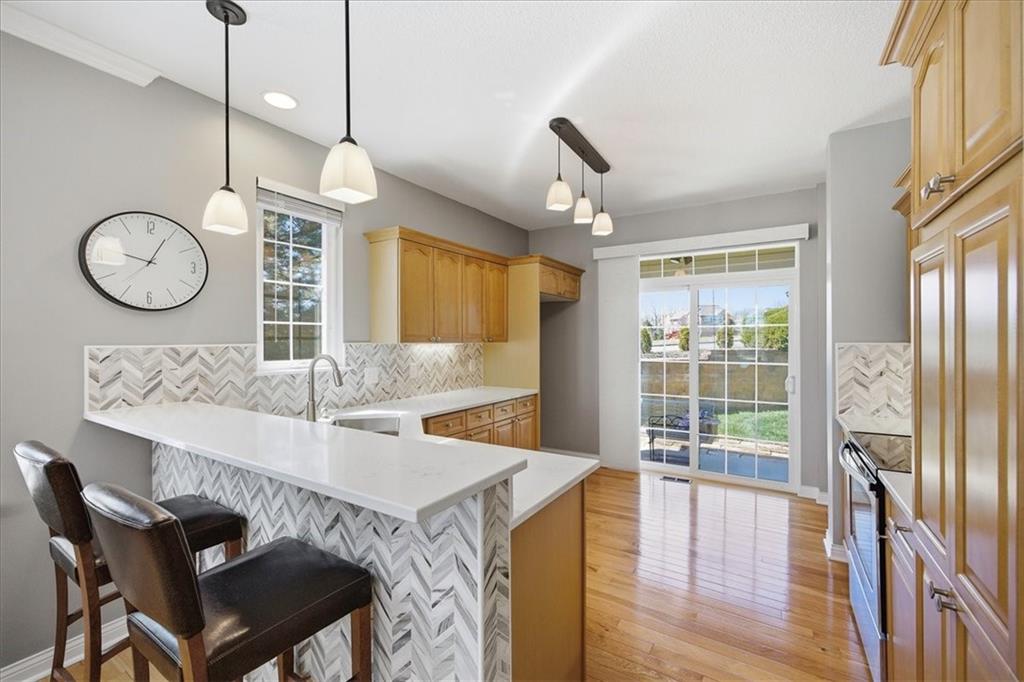 This beautifully updated detached villa is meticulously maintained and is a must see! It is filled with natural light and perfectly positioned to capture both stunning sunrises from the front and peaceful sunsets from the back patio. Large windows throughout create a bright, welcoming atmosphere, while the thoughtful updates allow you to simply move in and enjoy. The remodeled kitchen (2022) is both elegant and functional, featuring quartz countertops, a designer tile backsplash, updated fixtures, pull-out shelving, and rich hardwood floors that flow seamlessly throughout both levels. Upstairs, a versatile nook provides a flexible living space ideal for a home office, reading retreat, or creative space. The primary suite offers a beautifully updated shower, while other recent improvements provide peace of mind, including a new roof (2025), furnace (2022), water heater (2023), air conditioning system (2019), and exterior paint (2021). The major investments have already been made. Situated on one of the neighborhood’s more generous lots, the property feels like a private outdoor sanctuary, framed by mature trees that create a sense of privacy and tranquility. Outdoor enthusiasts will love the close proximity to the Wilderness Nature Trail just two blocks away, as well as the scenic walking trail surrounding the neighborhood pond. Residents enjoy access to desirable community amenities including a resort-style pool and fitness center, offering both relaxation and recreation just moments from home. Don't miss this rare opportunity to own a truly special home in a beautifully established community!