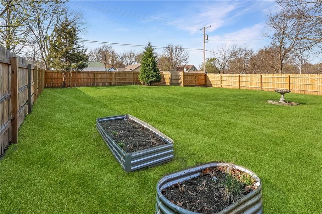 Great for first-time buyers or those looking to downsize! This cute 2-bedroom home offers one-level living with an attached garage. The pearl of the home is the spacious backyard, complete with a 6-ft privacy fence—perfect for relaxing or entertaining. Rear parking, a storage shed, all on a large lot. All appliances stay, and the eat-in kitchen adds to the home’s charm. Newer heating and cooling systems provide added comfort and peace of mind. Ideally located near the Harrisonville Square, parks, and schools.