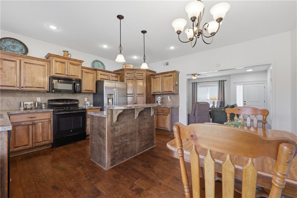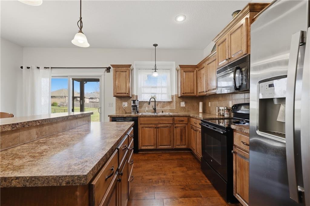Enjoy true one-level living in this charming ranch tucked away on a quiet cul-de-sac in a sought-after Grain Valley neighborhood. The open living area is filled with natural light and flows easily to the covered patio overlooking a nicely sized backyard. Start your mornings on the covered porch swing, which faces east for beautiful sunrise views overlooking the green space. The large unfinished basement offers abundant storage, a safe room, and endless potential to finish into additional living space, bedrooms, a media room, exercise room or whatever fits your needs. This location blends convenience with community, just minutes from shopping, dining, coffee shops, medical offices, schools and easy I-70 access. Nearby amenities include Adams Dairy and Coronado shopping, the new Buckner Tarsney corridor, Lake Remembrance and Blue Springs Dog Park. All of this with no HOA—don’t miss it!