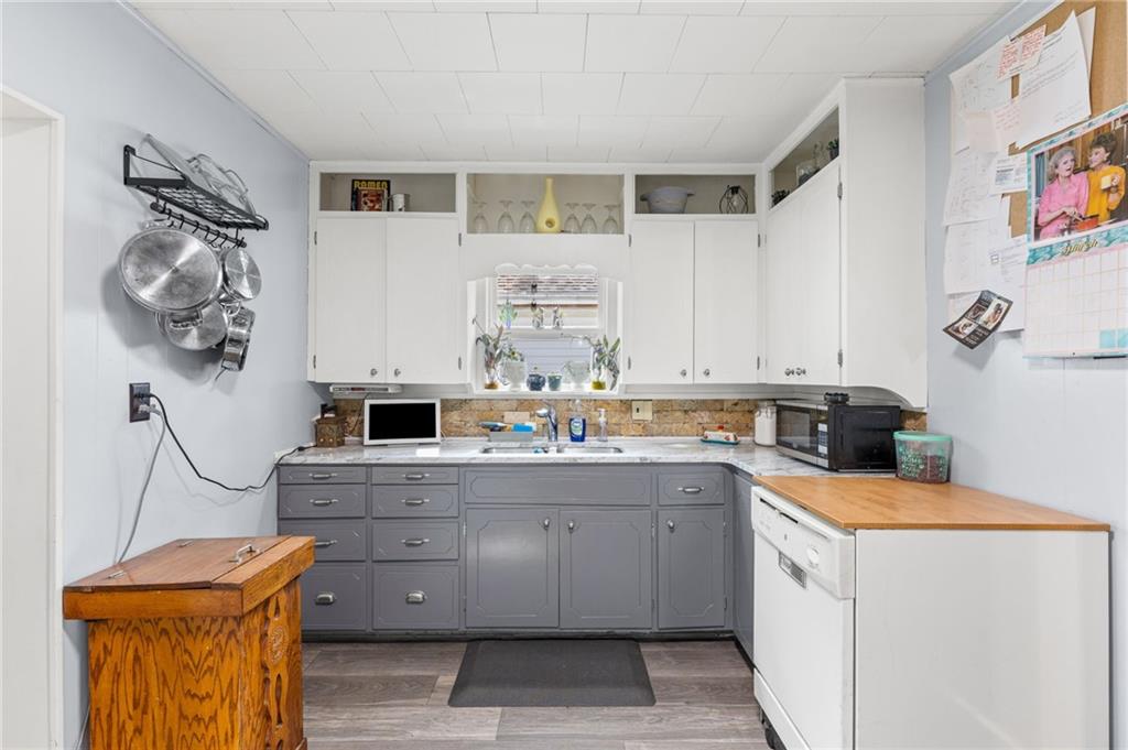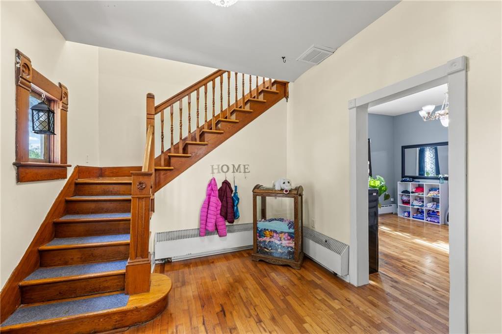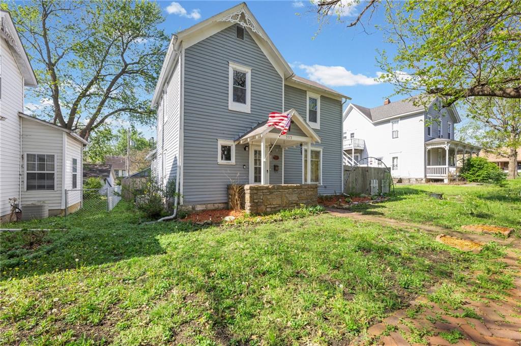 This stunning 4 bedroom, 2 bathroom home perfectly marries historic charm with modern sustainability, offering a rare opportunity to own a piece of architectural beauty. From the moment you step inside, you are greeted by the warmth of original woodwork, gleaming hardwood floors, and a magnificent original staircase that serves as a focal point of the home. The main level features a sprawling living room centered around a cozy gas fireplace, flowing seamlessly into a formal dining room designed for memorable gatherings. The kitchen is a chef's delight, boasting freshly painted cabinetry complemented by elegant new granite countertops. For year-round enjoyment, the sundrenched four-seasons room provides the ideal backdrop for entertaining guests or finding a quiet moment of repose. Practicality meets innovation with the inclusion of a newer HVAC heat pump and solar panels, ensuring exceptional energy efficiency and lower utility costs, including newer windows. The floor plan is thoughtfully designed for flexibility, offering a convenient main-floor bedroom while the upper level houses three additional spacious bedrooms and a full bathroom. Outside, the property continues to impress with a 2 car detached garage and a privacy fenced yard that offers a secluded oasis for relaxation. Situated in a prime location, this home is just a short stroll from the vibrant and historical Paola Town Square, where you can enjoy local shops, dining, and a variety of community events held throughout the year. This property isn't just a house; it's a lifestyle upgrade nestled in the heart of a charming community.