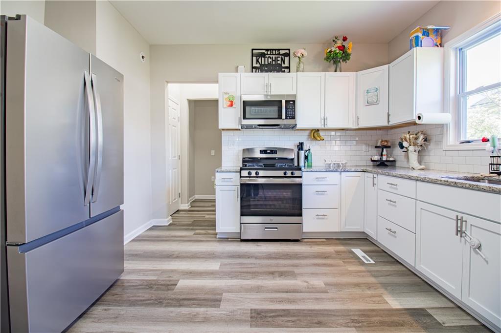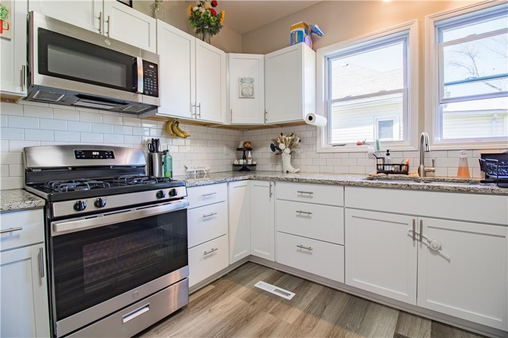 Welcome to this beautifully updated two-story home with just under 3,000sqft of living space! Whether you are looking for multi-generational living or have a large family, this home can fit everyone. The exterior has maintained its charm with a full modernized interior remodel. As you enter, you'll notice the spacious living area with newer lvp flooring, interior paint, and charming white brick fireplace. The large room off the kitchen features a pocket door, built-in drawers with a bench, perfect for a spacious dining area or second living space. The updated kitchen is equipped with newer stainless steel appliances and granite countertops. Upstairs, you'll find four generously sized bedrooms and a bonus room. The primary bedroom features a separate sunroom for relaxing with natural lighting. Both bathrooms have been updated with newer vanities, lvp, and white subway tile. The large back deck is perfect for hosting and entertaining. The unfinished basement provides tons of storage space or can be finished for even more living space. All updates were complete in 2024, including all new HVAC system.