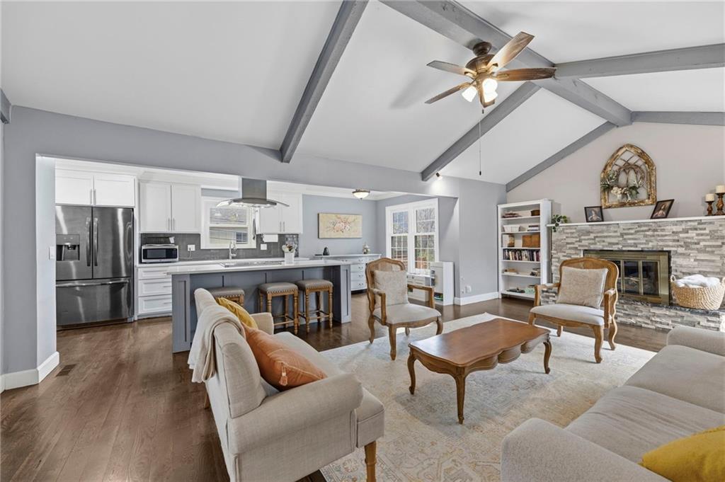 WELCOME HOME! Step inside this beautifully updated home where charm meets modern style. From the inviting curb appeal with fresh landscaping to the bright, open interior, every detail is designed to impress. The stunning kitchen features white cabinetry, sleek countertops, stainless steel appliances, and a large island perfect for gathering. It flows seamlessly into the spacious living room with vaulted ceilings, exposed beams, and a cozy, updated fireplace—creating an ideal space for both entertaining and everyday living. Warm hardwood floors and thoughtful built-ins add character throughout. Enjoy peace of mind with major updates already completed, including a new furnace, hot water heater, electrical panel, kitchen outlets, and smart thermostat, plus a newer roof. Bathrooms have also been updated by previous owners. Located just minutes from highways, shopping, dining, and parks, this home offers both convenience and lifestyle. Move-in ready and packed with value—don’t miss it!