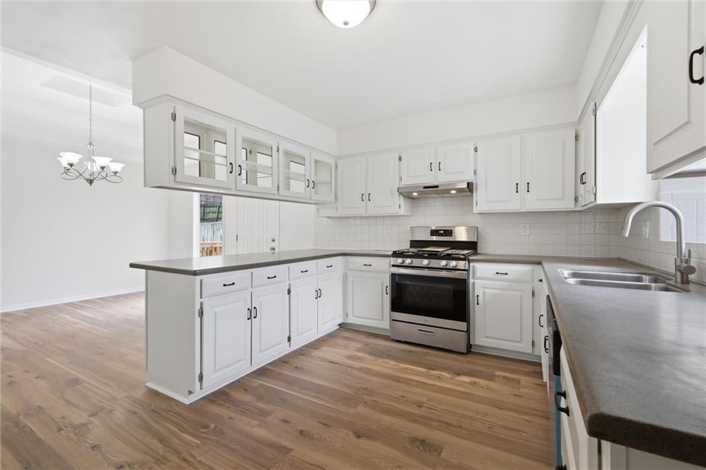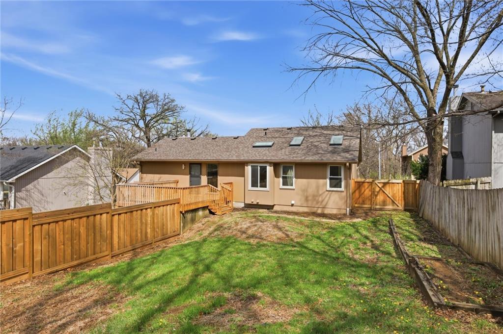 Welcome to 4109 NW 65th Street, nestled in the highly sought-after Seven Hills neighborhood within the Park Hill School District. This beautifully maintained split-level home offers 4 bedrooms, 3 full bathrooms, and nearly 2,000 square feet of finished living space — move-in ready from top to bottom. Curb appeal sets the tone from the moment you arrive, with warm wood-tone siding, a 2-car garage, and a welcoming front entry framed by a classic wood staircase. Step inside to an open dining and kitchen area featuring brand new flooring throughout, white cabinetry with glass-front uppers, tile backsplash, generous counter space, and a gas range — all flowing seamlessly to the brand new deck through a sliding glass door, perfect for indoor-outdoor entertaining. The primary suite impresses with soaring vaulted ceilings, a skylight, ceiling fan, walk-in closet, and a private en-suite bath. Additional bedrooms are spacious and bright, each with fresh new flooring and served by two full bathrooms with clean, updated finishes. A standout feature on the lower level is the charming barn door entry leading into the recreation room — an ideal flex space for a home office, playroom, or guest suite. The sub-basement provides ample unfinished storage housing all recently updated mechanicals. Out back, enjoy a brand new fence enclosing a generous yard paired with a freshly built deck — perfect for summer entertaining. Major systems updated include roof (2020), AC and HVAC (2022), and water heater (2023). Just 12–15 minutes from downtown Kansas City with easy access to I-29, this home delivers suburban comfort without sacrificing convenience. Don't miss it — homes in Seven Hills move fast!