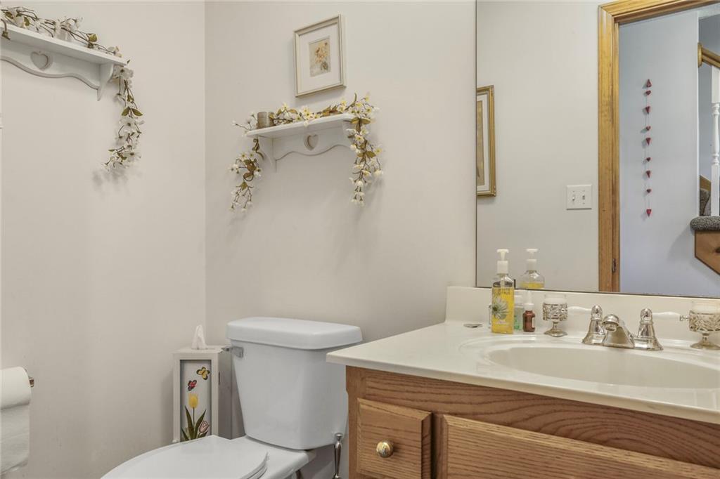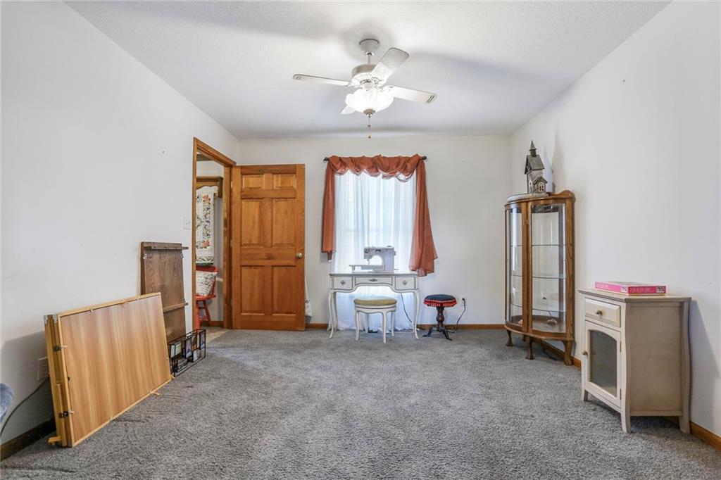 Welcome to your private oasis just outside the city limits! Nestled on nearly 25 picturesque acres on a paved road, this unique two-story home offers the best of both worlds—peaceful country living with the convenience of being just minutes from town and highway access. Step inside to a warm and inviting living room filled with natural light, featuring a cozy wood-burning stove. The open-concept design flows seamlessly into the kitchen, complete with tile floors, abundant cabinet and counter space, and a versatile bonus room just off the kitchen—perfect for a custom butler’s pantry or coffee bar. The dining area opens to an expansive deck, ideal for entertaining or simply taking in breathtaking views. You’ll even catch a stunning display of fireworks on the Fourth of July right from your deck! The main level also includes a dedicated office with French doors and custom built-ins, a convenient laundry room, and a half bathroom. Upstairs, the primary suite offers a tray ceiling, generous walk-in closet, cozy sitting area, and private bath complete with a whirlpool tub and separate shower. Two additional bedrooms and a full bathroom with tub and shower complete the upper level. The lower level offers ample storage and is ready to be finished to suit your needs-whether as additional living space, home gym, or game room. Enjoy the large outbuilding and shed for storage or hobby use. The property is ideal for nature lovers and hunters alike, with abundant wildlife and a charming bridge that leads to a gazebo—perfect for relaxing!