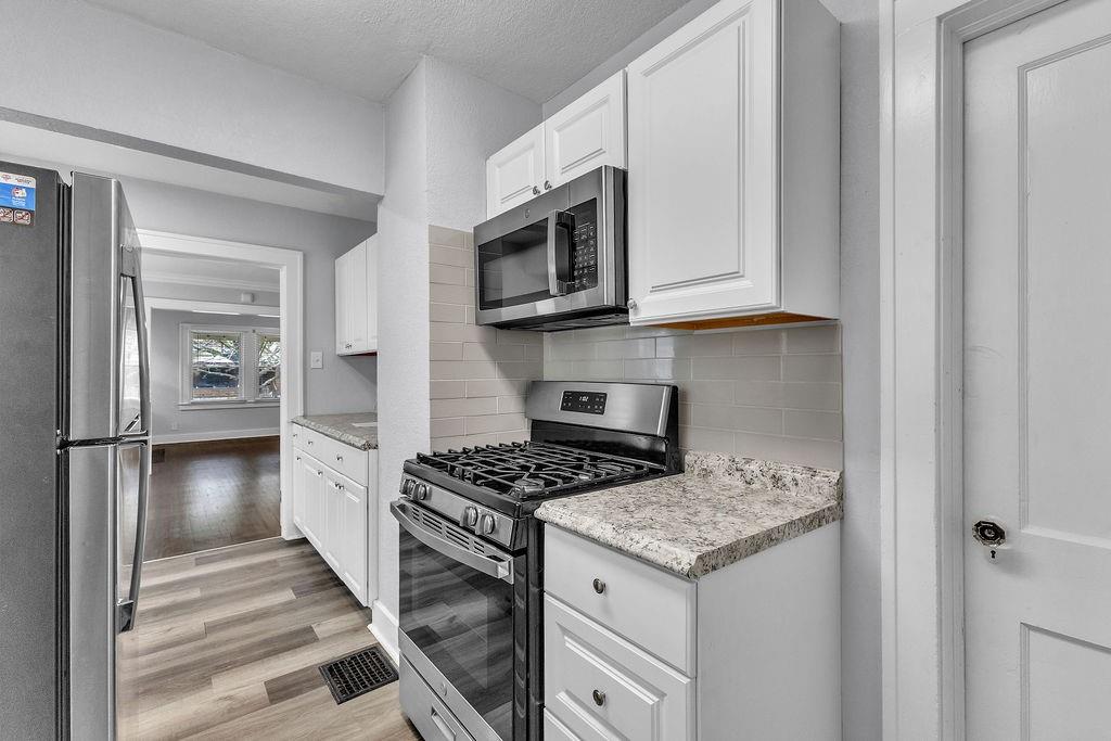 Don't miss out on this beautiful Craftsman! 2 bedroom, 1 bathroom! Stunning recently refinished hardwoods, fireplace as the focal point of the living room, lots of natural light! Stainless kitchen appliances, kitchen cabinets and countertops, roof, bathroom, and energy efficient HVAC system all done 4 years ago!! New interior paint just completed! Perfect home for a 1st time homebuyer or college student!