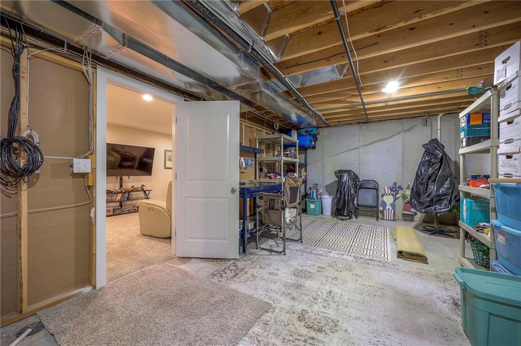 Welcome to this stunning ranch/reverse 1.5-story home, where thoughtful design and modern finishes come together seamlessly. The open-concept living room, kitchen, and breakfast area make a striking first impression with soaring cathedral ceilings, luxury vinyl plank flooring, and expansive windows that bathe the space in natural light. The kitchen is both stylish and functional, featuring upgraded granite countertops, a beautiful tile backsplash, painted cabinetry, and stainless steel appliances. Just off the kitchen, the breakfast area opens to a covered patio through sliding glass doors. The living room provides the perfect spot to relax, with a gorgeous fireplace. The primary suite is complete with vaulted ceilings, box bay windows overlooking the backyard, and lush carpet floors. The en suite bath offers a double vanity, a beautifully tiled walk-in shower with a built-in niche and granite bench, and a walk-in closet. Two additional bedrooms with generous closet space, a second full bathroom, and conveniently located laundry complete the main level. The builder-finished basement extends the living space with a fourth bedroom featuring a large egress window, a third full bathroom, and an expansive family room and recreation area—ideal for entertaining or relaxing. Situated on a generous corner lot, the home also features a large patio with both covered and uncovered areas, perfect for hosting BBQs or enjoying time outdoors. Notable upgrades include an irrigation system, buried downspouts, enhanced landscaping, a vertical garage door opener, and an expanded patio.