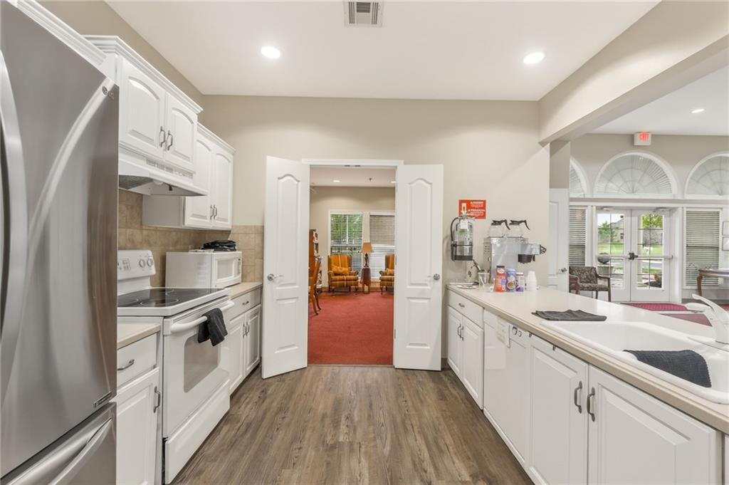 Class and quality. One of few TRUE maintenance provided options in this tier and style. Owners here pay next to nothing for homeowner's insurance. This large 3 bed floor plan is clean and bright. Engineered hardwood floors. Large window set in hearth room. Ample kitchen for function and storage. Master bedroom suite with vaulted ceilings is upgraded with an upright jet tub/shower combo in excellent condition. 50 steps to the club house! Covered front porch/patio has deep roof overhang for shade and shelter. All appliances stay.