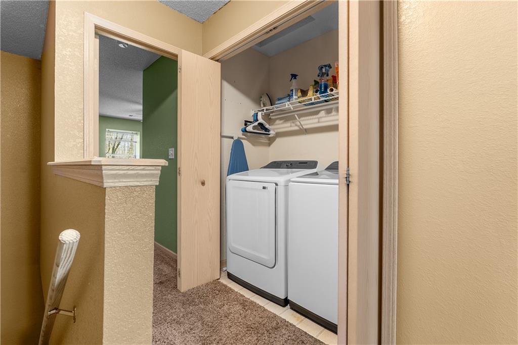 Enjoy low-maintenance living in this standout end-unit condo, known as the “Super 2” floor plan—offering similar square footage to many 3-bedroom units, but designed with 2 oversized primary suites instead. Backing to a beautiful treed greenspace, this condo offers privacy, peaceful views, and a functional 2-story layout. Upstairs, both spacious suites feature walk-in closets and private attached baths, while bedroom-level laundry adds everyday convenience. The open main level flows seamlessly between the kitchen, dining, and living areas, complete with a wood burning fireplace and laminate flooring for a warm, cozy feel. Unwind on your private patio and enjoy the quiet greenspace backdrop.