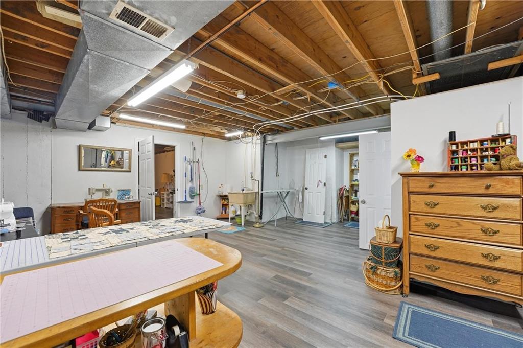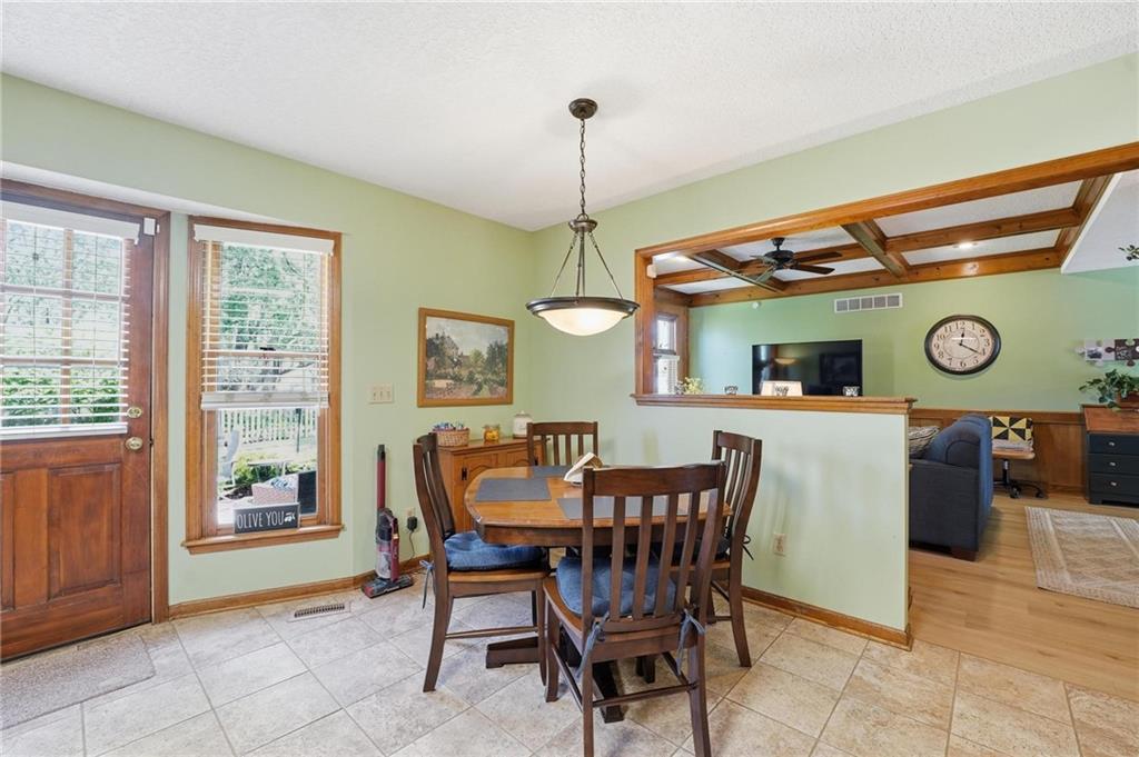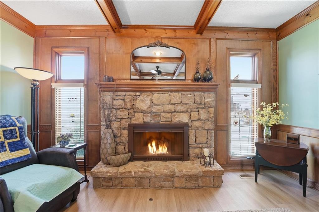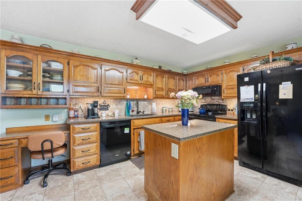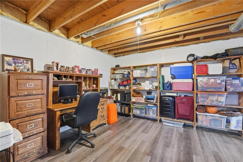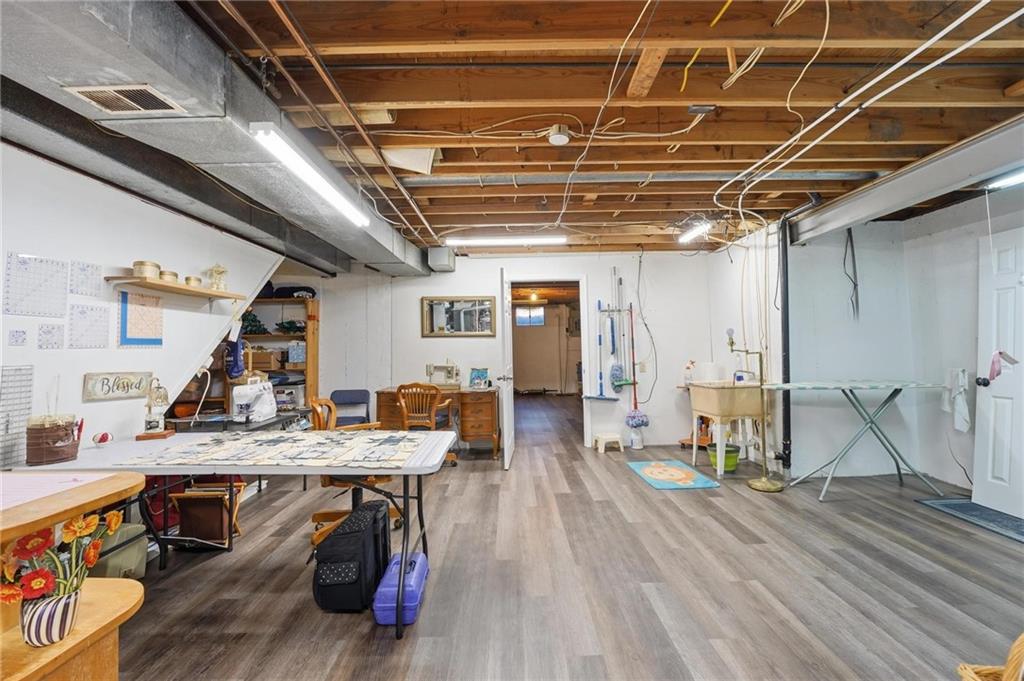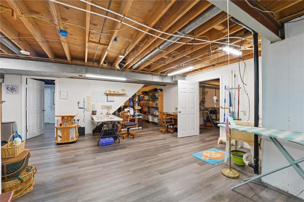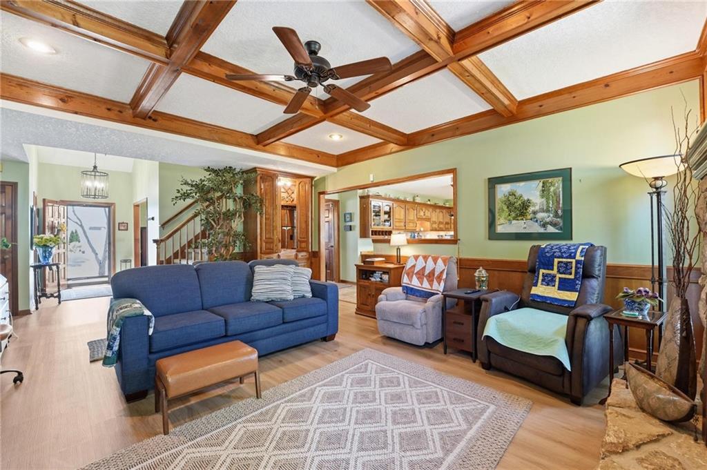 Welcome Home! This well cared for beauty is move in ready for you. Main level living with 2 large bedrooms and one full bath upstairs. The spacious main level has a calm and pleasing primary suite with walk in closet, separate shower and large garden tub, double vanity, skylight and vaulted ceiling. The formal dining showcases itself off the entry. The center of the home is the beautiful and classic living room. It has a masonry fireplace, box beam ceiling, built in wet bar and LVP flooring. The kitchen is a dream and all updated for you with tile floor, quartz countertops and tile backsplash. Kitchen island for easy food prep and built in desk. Laundry and half bath off kitchen area makes an easy flow of living, washer and dryer stay with home. The basement has a great room, hobby room with workbench, craft room with sink and more! New LVP flooring, 3 year old HVAC with humidifier and air cleaner. Whole home water purification system. The back yard is ready for summer cook outs and fun in the sun. Newer stone patio, wood fencing and lovely landscaping. The driveway is newer and the garage floor is acrylic coated. The garage also has cabinets and a fridge that stays. All window treatments stay. Security system. The centrally located neighborhood is friendly and close to highway access, the new middle school and the dog park. Basement SF of finished area is estimated.