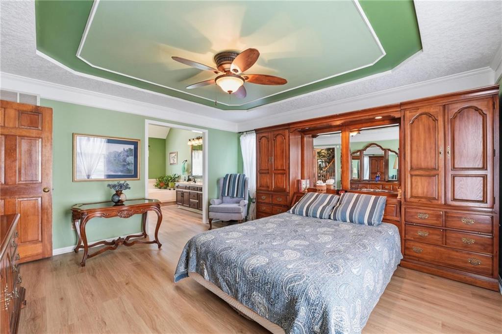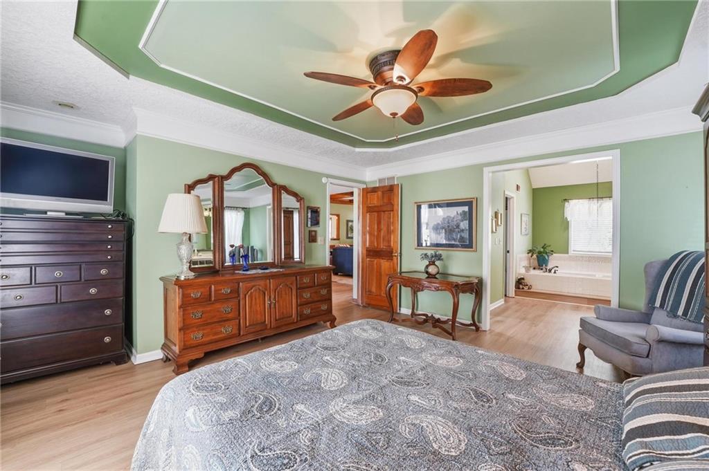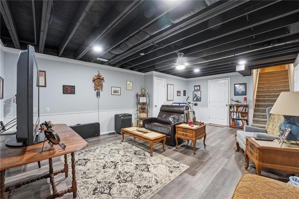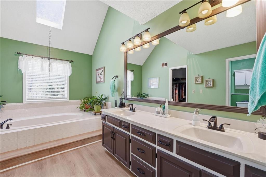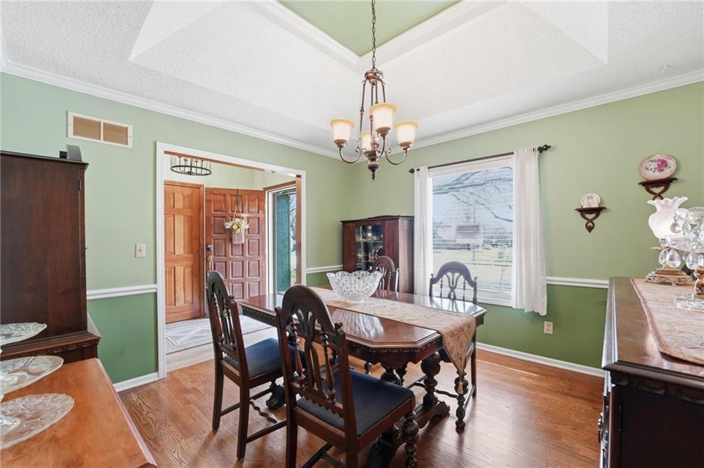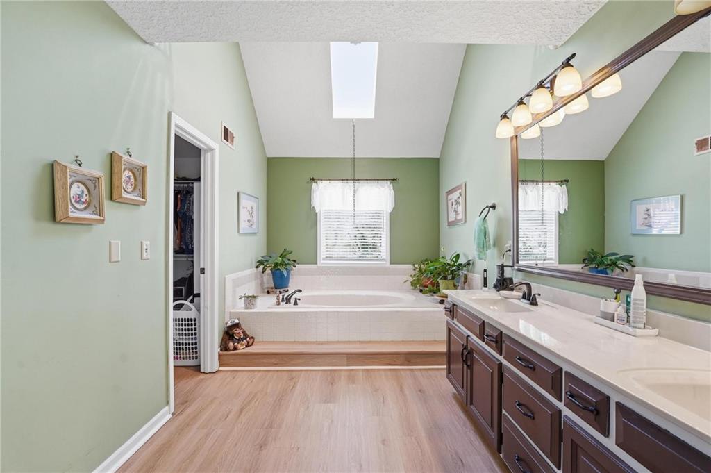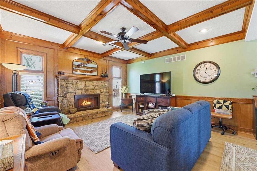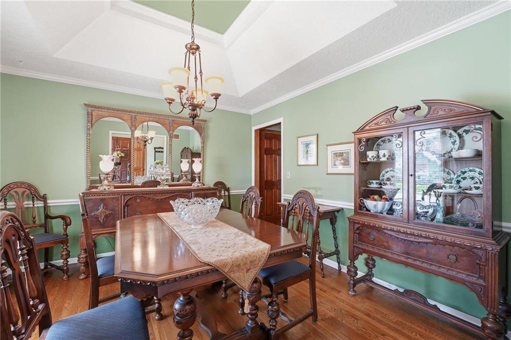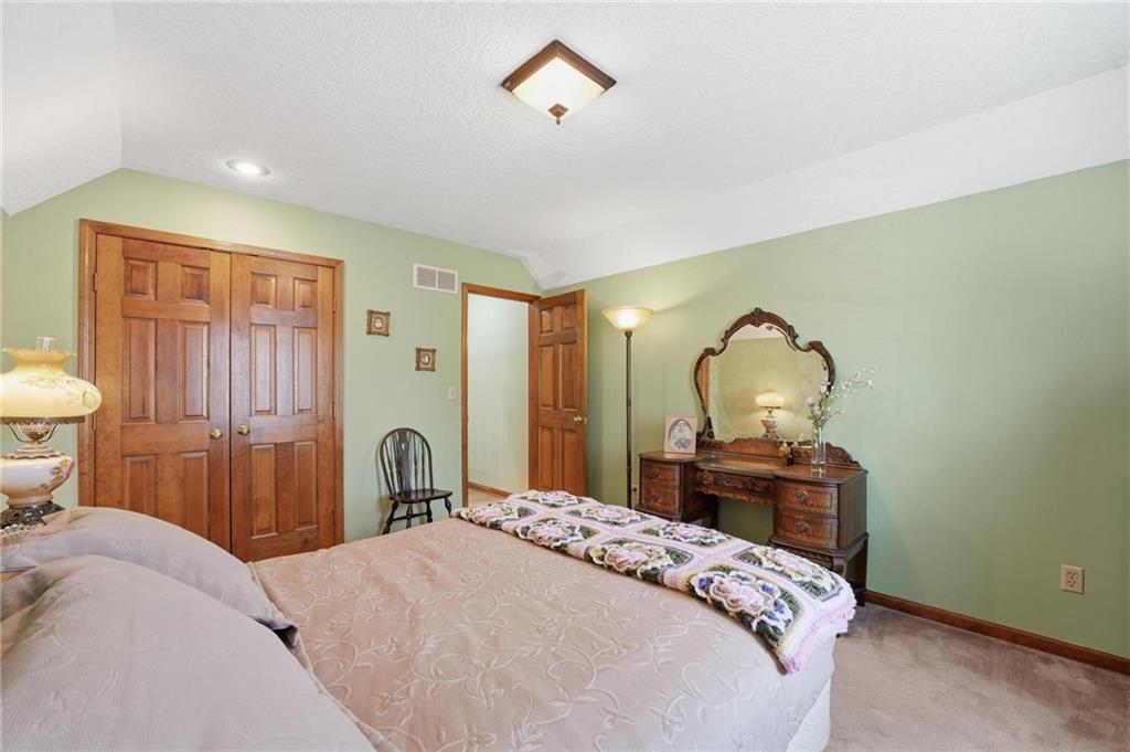 Welcome Home! This well cared for beauty is move in ready for you. Main level living with 2 large bedrooms and one full bath upstairs. The spacious main level has a calm and pleasing primary suite with walk in closet, separate shower and large garden tub, double vanity, skylight and vaulted ceiling. The formal dining showcases itself off the entry. The center of the home is the beautiful and classic living room. It has a masonry fireplace, box beam ceiling, built in wet bar and LVP flooring. The kitchen is a dream and all updated for you with tile floor, quartz countertops and tile backsplash. Kitchen island for easy food prep and built in desk. Laundry and half bath off kitchen area makes an easy flow of living, washer and dryer stay with home. The basement has a great room, hobby room with workbench, craft room with sink and more! New LVP flooring, 3 year old HVAC with humidifier and air cleaner. Whole home water purification system. The back yard is ready for summer cook outs and fun in the sun. Newer stone patio, wood fencing and lovely landscaping. The driveway is newer and the garage floor is acrylic coated. The garage also has cabinets and a fridge that stays. All window treatments stay. Security system. The centrally located neighborhood is friendly and close to highway access, the new middle school and the dog park. Basement SF of finished area is estimated.