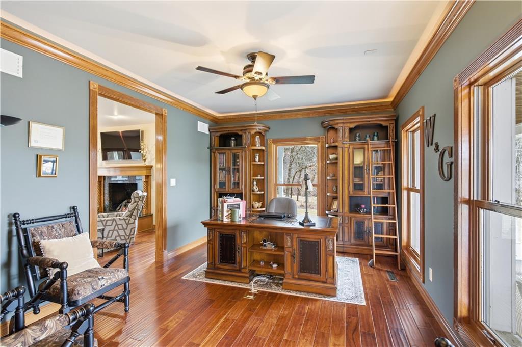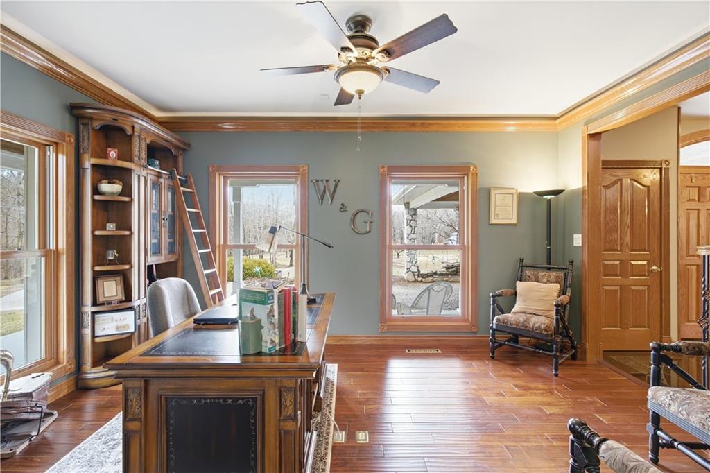 Welcome to your Dream Retreat in Columbia, Missouri! Nestled on 26 breathtaking acres, this one-of-a-kind property offers the perfect balance of luxury living and outdoor recreation. The land features a stocked private lake complete w/ islands and bridges, creating a stunning centerpiece that feels like your own private resort. Property is loaded w/ deer and turkey, making it an exceptional retreat for wildlife lovers and outdoor enthusiasts. The 7,500 sq ft custom home has been meticulously cared for and is filled w/ high-end features throughout. From the granite entryway, you’ll appreciate the craftsmanship and attention to detail, including hand-scraped teak floors, a stunning curved staircase, and 2 fireplaces. The home offers 4 spacious bedrooms and 5 bathrooms, along with a quiet study, large office space, abundant storage, and an attached three-car garage. The fantastic kitchen is built for both everyday living and entertaining, featuring a Wolf gas stove, high-end appliances, a hidden pantry, and generous storage space throughout. Just off the main living area, the sunroom provides the perfect place to relax and watch the wildlife, overlooking the incredible scenery this property has to offer. The luxurious master suite includes a spa-like bathroom equipped with heated floors, TV, coffee maker, and refrigerator, as well as a large walk in closet. The finished basement is designed for entertaining, featuring a spacious entertainment area along with a bar and small kitchen, making it the ideal place to host guests, watch the big game, or unwind after a long day. Outside, the property also includes a large two-story outbuilding with potential living quarters, providing endless possibilities for guests, a workshop, or additional storage. This rare 26 +/- acre estate truly offers the best of both worlds - a private retreat with incredible scenery, wildlife, and recreation located just 7 miles from downtown Columbia. Opportunities like this are incredibly rare!