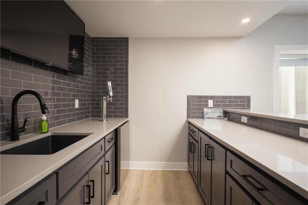 Experience resort-style living in this stunning 4.5-year-old reverse ranch with 4 bedrooms & 3 bathrooms with upscale finishes and exceptional amenities throughout. Designed for both everyday comfort & elevated entertaining, this home truly has it all. Step outside to your private oasis featuring a heated saltwater/chlorine pool complete with a built-in basketball goal, expansive outdoor kitchen with premium Blaze appliances & a half-court sport basketball court—perfect for hosting or relaxing in style. Inside, the main level showcases real 5” hardwood floors & a chef’s kitchen outfitted with top-of-the-line Café appliances, including an Advantium oven. A spacious walk-in butler’s pantry provides additional cabinetry & a beverage refrigerator for ultimate convenience. The finished basement is an entertainer’s dream, featuring a full-size bar with a built-in kegerator. The luxurious primary suite is a true retreat, boasting heated bathroom floors, dual shower heads including a rain feature, tall ceilings with a marble accent wall & a TV positioned above the soaking tub for added relaxation. The oversized walk-in closet includes a built-in dresser, custom shelving, and three-tiered hanging rods. Additional highlights include a functional mudroom off the garage, enhanced interior and exterior lighting, generously sized bedrooms with walk-in closets, and premium finishes throughout. Situated on over ¾ of an acre, the property offers a picturesque setting with mature trees, green space, and a striking stone wall. Enjoy exclusive access to the lake with a community dock slip and available lift lease, plus the added benefit of 2026 HOA fees covered for the new owner. The neighborhood enhances the lifestyle with amenities including a park, walking trails, pickleball and tennis courts, a yacht club & an upcoming community pool & clubhouse. Don’t miss this rare opportunity to own a home that perfectly blends luxury, recreation, and tranquility. *Owner/Agent*