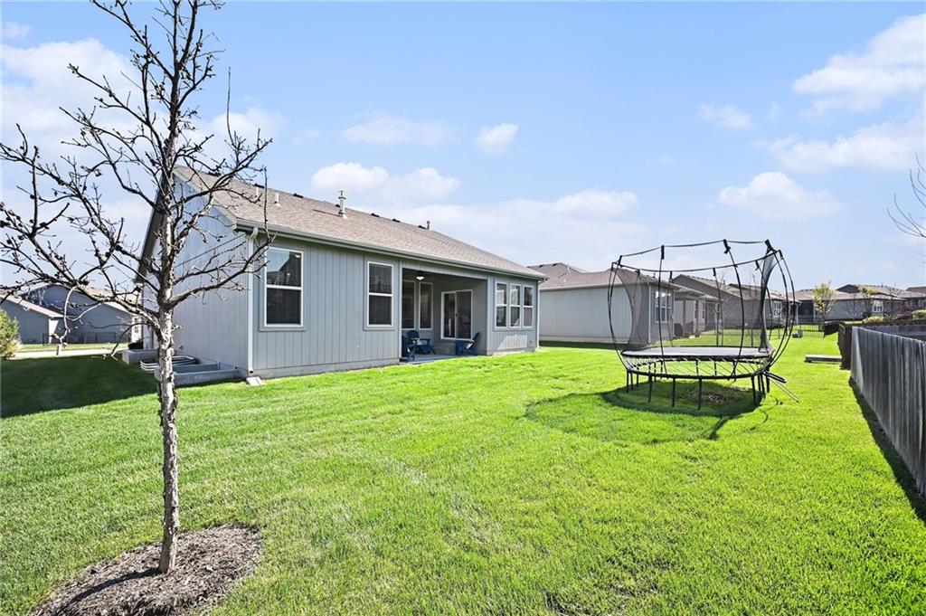 Located in a newer neighborhood that's still growing, this reverse ranch feels like a nearly new home. Built just four years ago by Summit Homes, it has a modern layout with finishes that are fresh, clean, and ready for you to move into. The home offers 4 bedrooms and 3 full bathrooms. The main level has approximately 1,544 sq. ft. of living space, and the basement adds another 988 sq. ft. of finished area. The open layout on the main floor makes it easy to flow from the kitchen to the dining area and living room. The kitchen has great finishes and a design that works well for both everyday meals and entertainment, plus there’s a mudroom and pantry near the three-car garage for extra convenience. The primary suite is on the main level for privacy and comfort, with a spacious bedroom, a well-designed bathroom, and direct access to a walk-in closet. A second bedroom and full bathroom near the front offer flexibility for guests or an office. Downstairs, the large family room is great for hanging out, with a wet bar that's great for hosting. Two more bedrooms share a Jack-and-Jill bathroom, and there’s unfinished space for extra storage. Egress windows bring in natural light and make the lower level feel bright and welcoming. Outside, you’ll find a covered concrete patio right off the dining area—perfect for quiet evenings or entertaining guests. The yard has an in-ground sprinkler system, and the home comes with a security system for peace of mind. With 2,532 sq. ft. of finished space, a three-car garage, and a location in a growing part of Blue Springs area, this home blends modern style, useful space, and everyday comfort—ideal for those who want something that feels new without the hassle of starting from scratch.