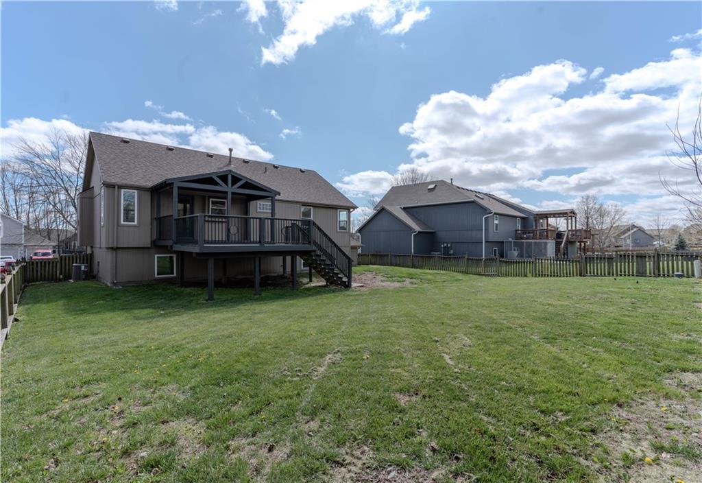 Newly updated Liberty North school district with stainless steel appliances, painted cabinets and quartz countertops, new flooring throughout, all new lighting and vanities, updated tile, and large covered deck perfectly updated and ready for you to move right in. Huge garage very deep almost 1000 square feet, including Family safe storm shelter.