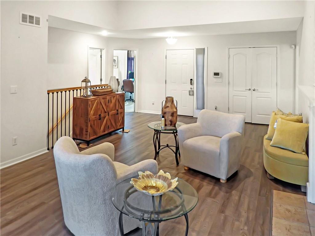 Welcome to this well maintained 3 bedroom, 3 full bath ranch townhome offering true main-level living with an expansive finished lower level. This great family home impresses with a vaulted ceiling in the spacious living room, highlighted by a stunning double-sided fireplace that seamlessly connects to the kitchen. The kitchen offers abundant cabinetry, generous counter space, an island with bar seating, and it flows seamlessly to the formal dining room. Just beyond, enjoy easy access to the covered and partially enclosed deck, creating a wonderful indoor-outdoor flow in spring, summer, and fall. The primary suite offers comfort and privacy with a walk-in closet and en-suite bath, and the finished lower level is a true standout—offering a massive, versatile space ideal for a second living area, game room, or guest retreat. Enjoy low maintenance living that includes exterior maintenance, lawn care, and snow removal. Conveniently located near parks, shopping, and dining, this home offers the perfect blend of comfort, space, and convenience.
