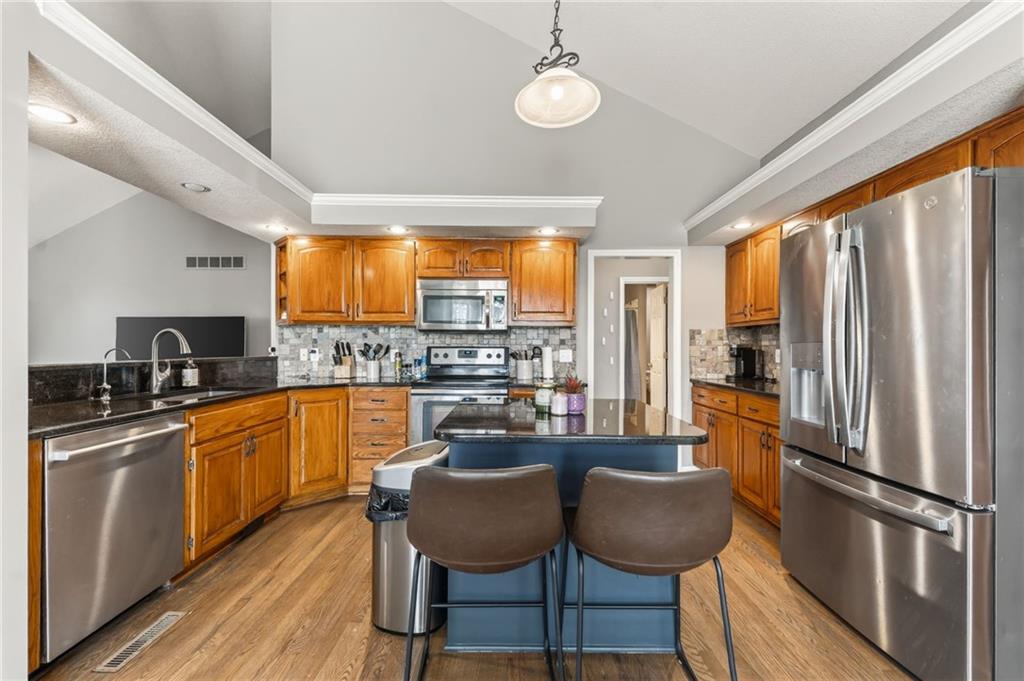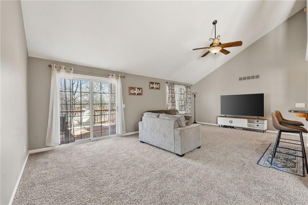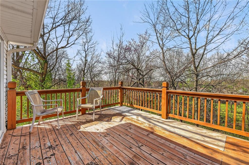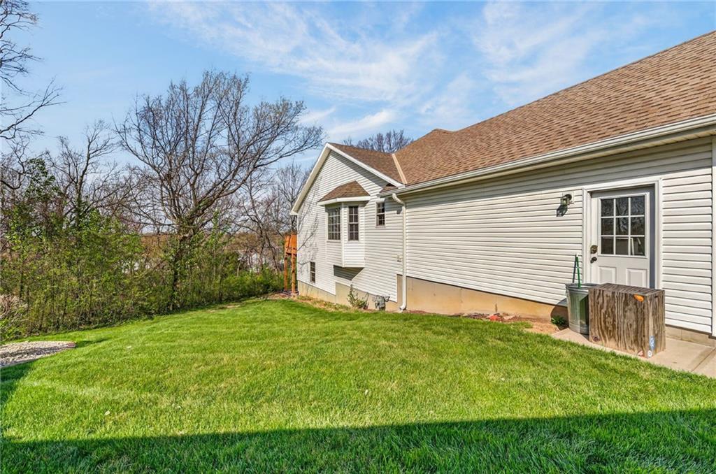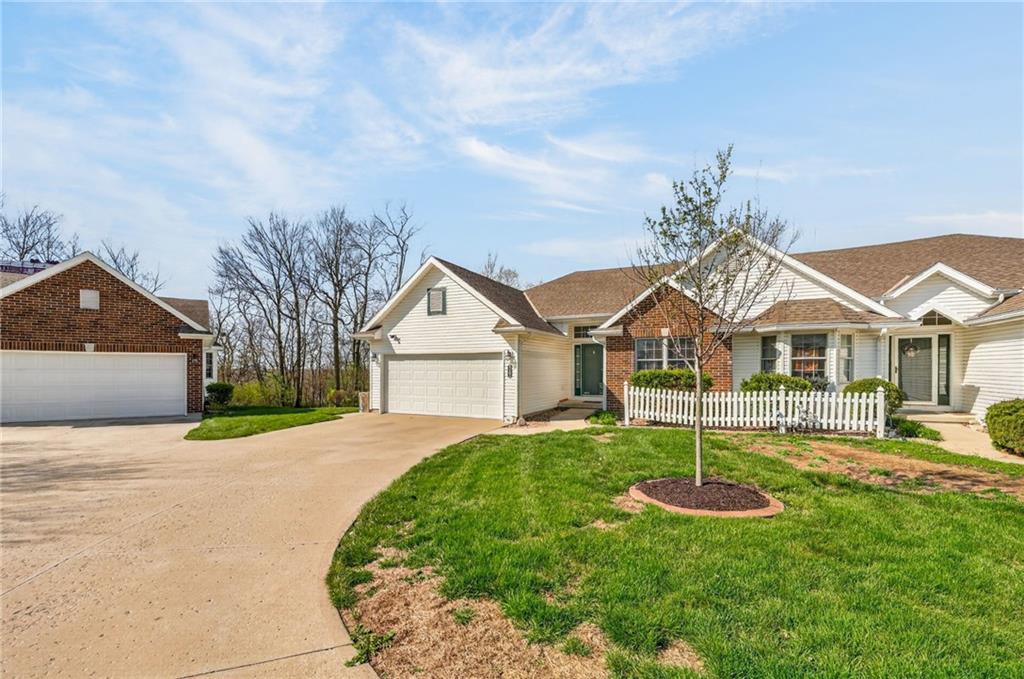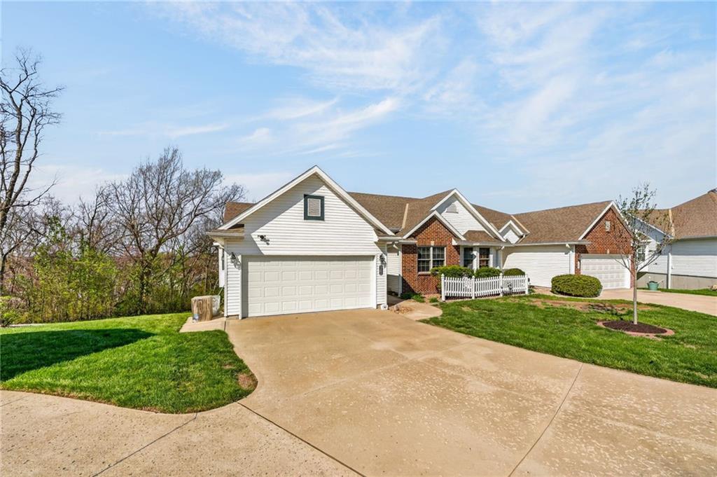 Welcome to this beautifully updated home nestled in a prime Platte City location! Designed with an open-concept layout, this home offers the perfect blend of comfort and functionality, ideal for both everyday living and entertaining! Enjoy newer interior paint and carpet throughout, along with newly refinished hardwood floors in the kitchen and entryway that adds warmth and charm. The kitchen is a standout, featuring granite countertops, custom wood cabinetry, and abundant counter space and storage. The main-level primary suite offers a relaxing retreat with vaulted ceilings, a spacious walk-in closet, and a large en suite bathroom complete with a double vanity. Two additional generously sized bedrooms —one on the main level and one in the lower level—both include large closets for ample storage. The fully finished walk-out basement provides a massive living area, perfect for hosting gatherings or creating additional living space. Step outside to a large deck overlooking a private, tree-lined yard—ideal for enjoying peaceful mornings or evening get-togethers. Located in a maintenance-provided community on a quiet cul-de-sac, this home also offers a fantastic location with highly regarded schools. This one truly has it all!