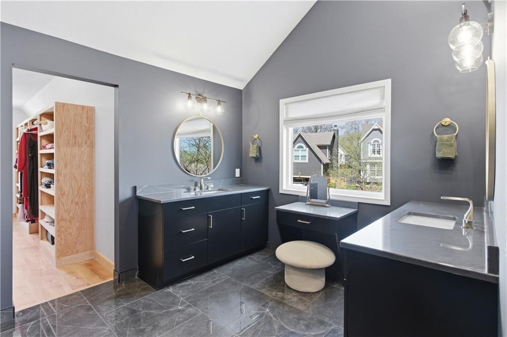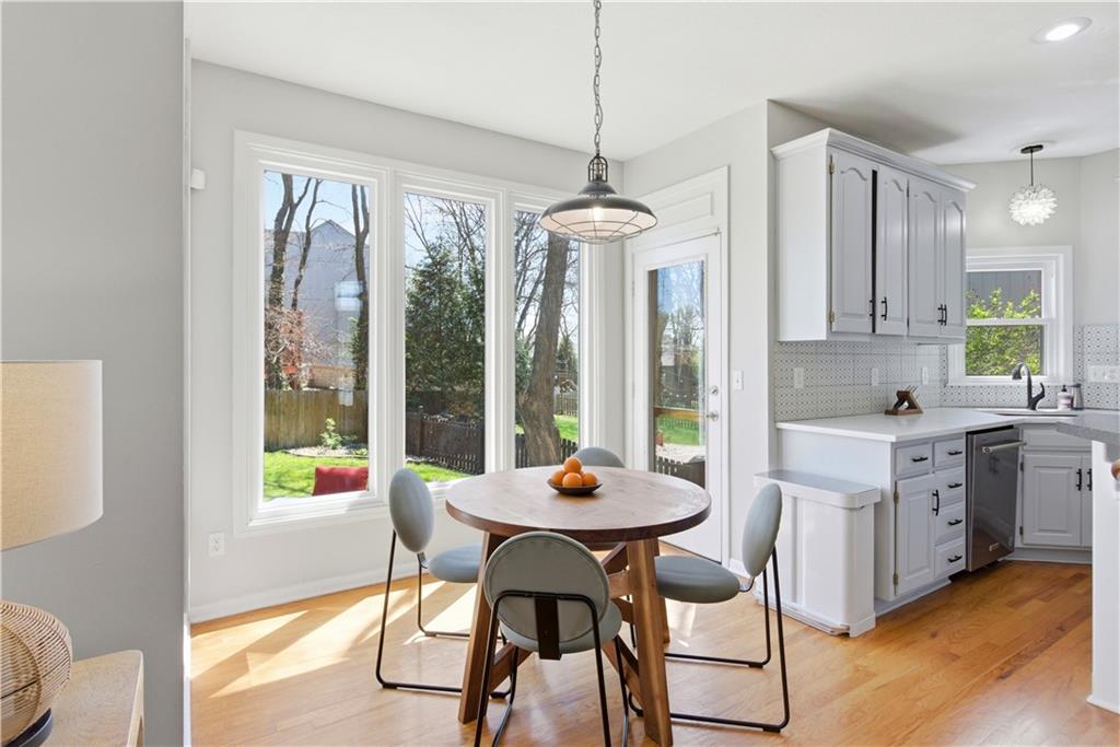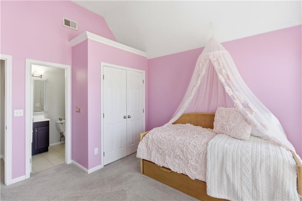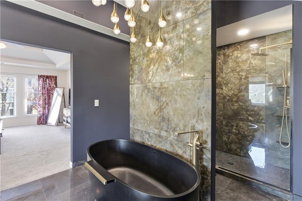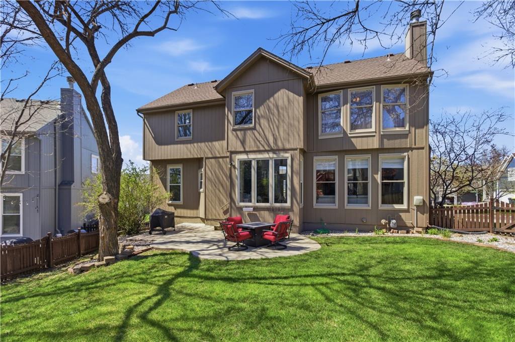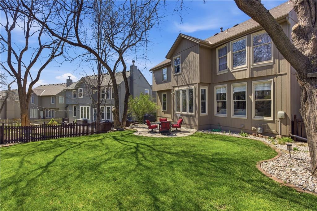 Stunning formal front living & dining room flows to light & bright great room/kitchen combo with floor to ceiling windows. Kitchen features stainless steel appliances, plenty of cabinets and counter space & island. NEW Fridge/Dishwasher. Great room overlooks lush, well manicured back yard. Half bath and laundry off main level and garage access. NEW Washer/dryer combo. The grand staircase leads you to the second floor bedroom level. Good sized rooms all with attached baths. Guest room off the front and bedrooms 2/3 with jack and jill style bath. AMAZING primary suite with large bedroom and leads to gorgeously renovated modern bathroom. Get ready in the mornings in style! HUGE walk in closet with beautiful built-ins. Sleek finished basement has many possibilities: office space, media room, play room. Half bath down here as well. Newer AC! Shaded fenced backyard with large patio. Neighborhood pool! Located in the award winning Olathe School District and so much more!