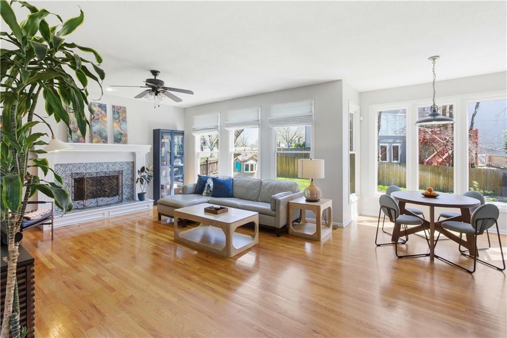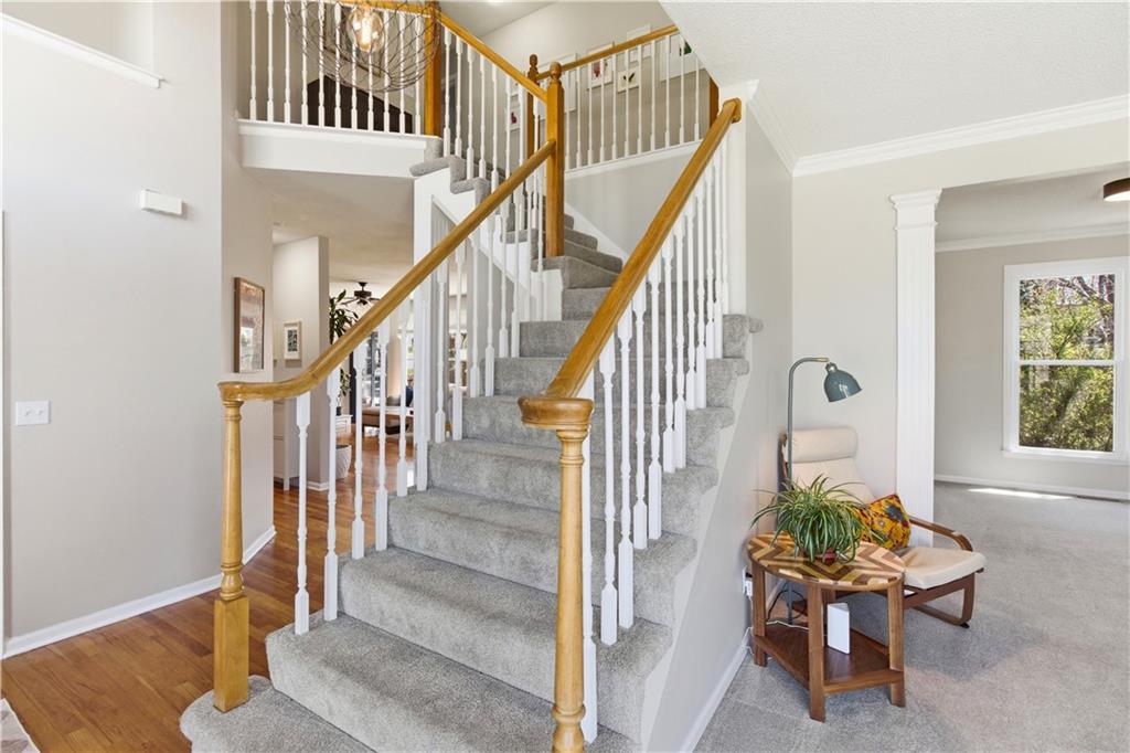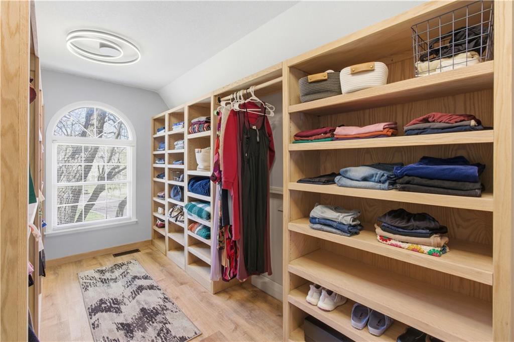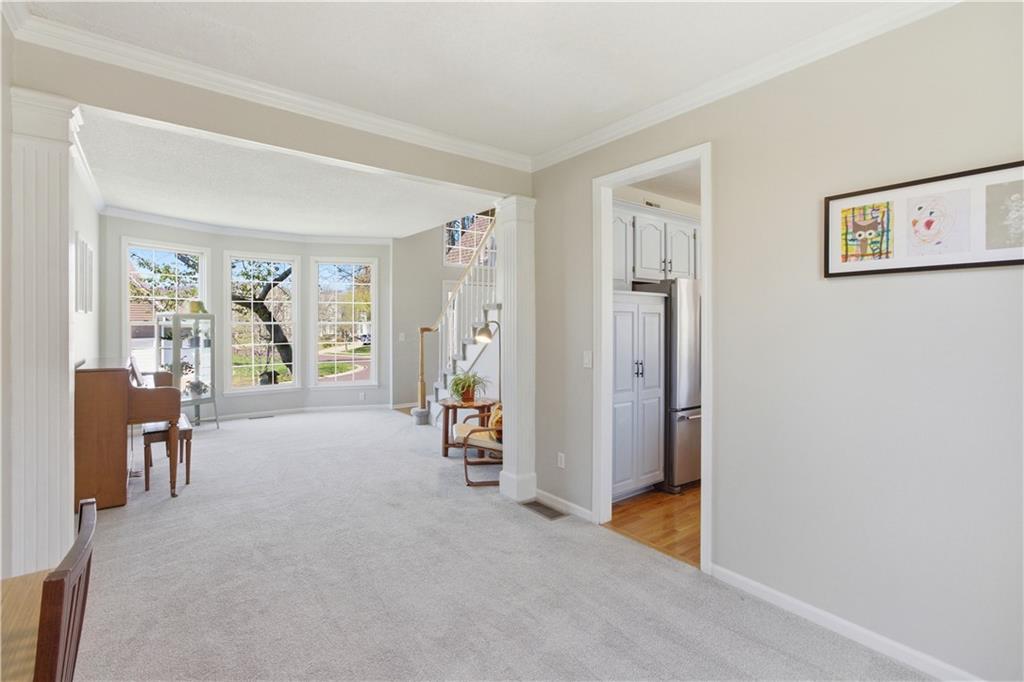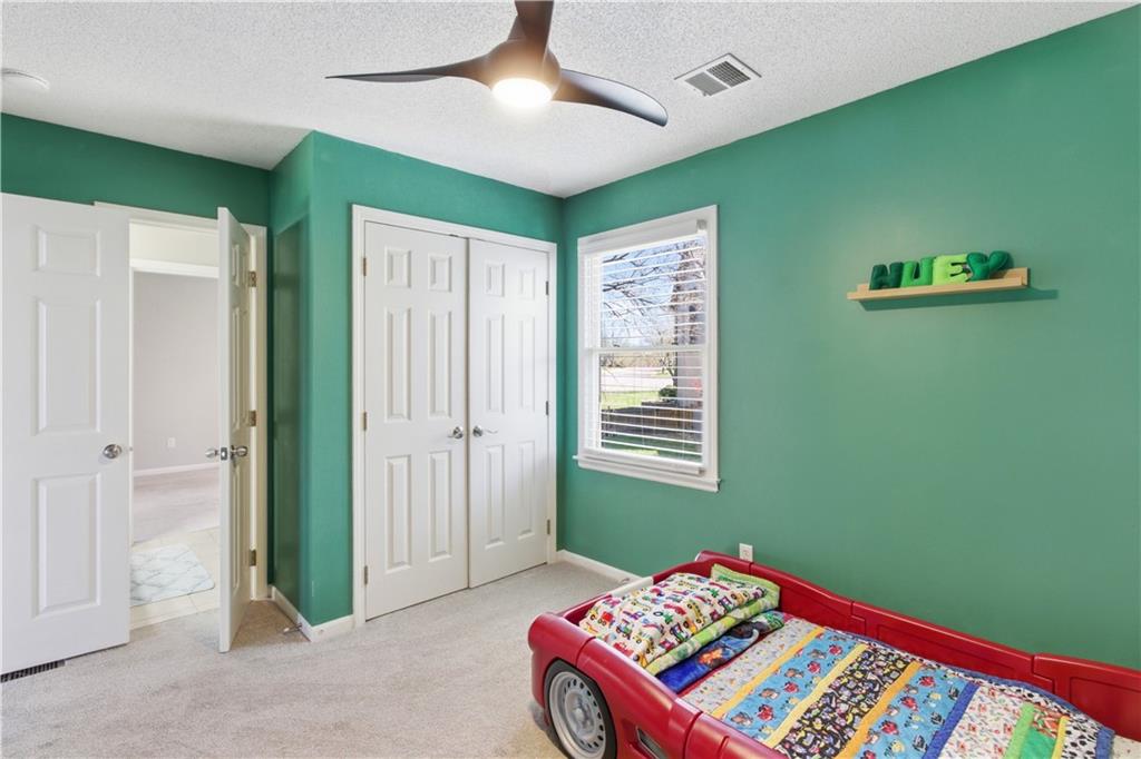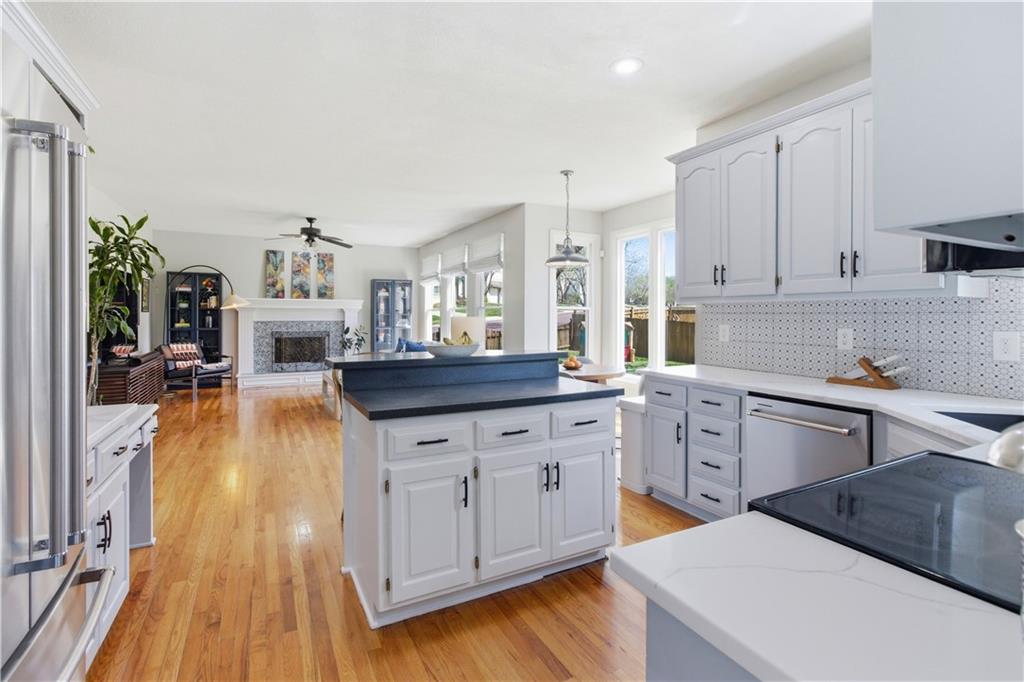 Stunning formal front living & dining room flows to light & bright great room/kitchen combo with floor to ceiling windows. Kitchen features stainless steel appliances, plenty of cabinets and counter space & island. NEW Fridge/Dishwasher. Great room overlooks lush, well manicured back yard. Half bath and laundry off main level and garage access. NEW Washer/dryer combo. The grand staircase leads you to the second floor bedroom level. Good sized rooms all with attached baths. Guest room off the front and bedrooms 2/3 with jack and jill style bath. AMAZING primary suite with large bedroom and leads to gorgeously renovated modern bathroom. Get ready in the mornings in style! HUGE walk in closet with beautiful built-ins. Sleek finished basement has many possibilities: office space, media room, play room. Half bath down here as well. Newer AC! Shaded fenced backyard with large patio. Neighborhood pool! Located in the award winning Olathe School District and so much more!