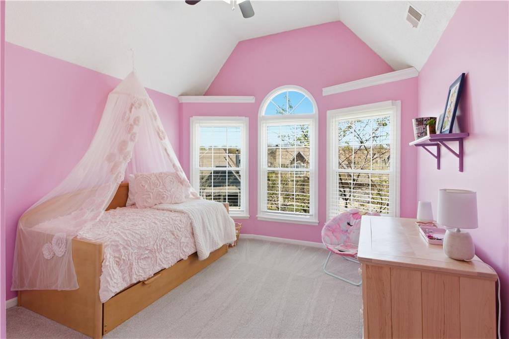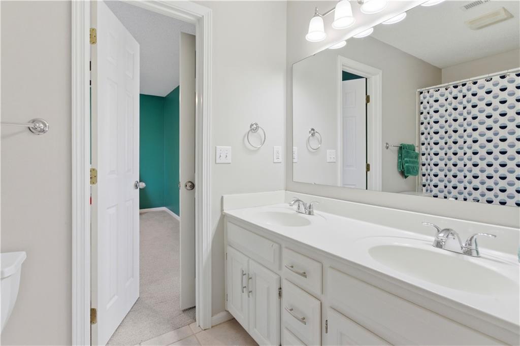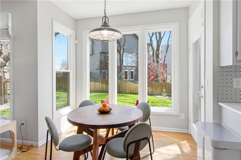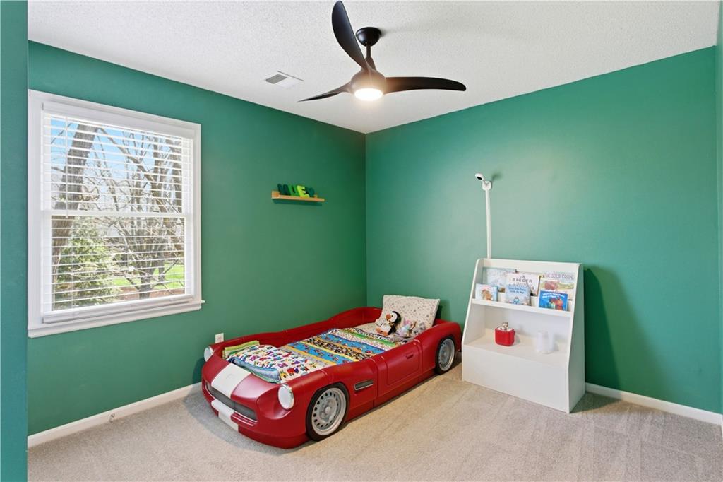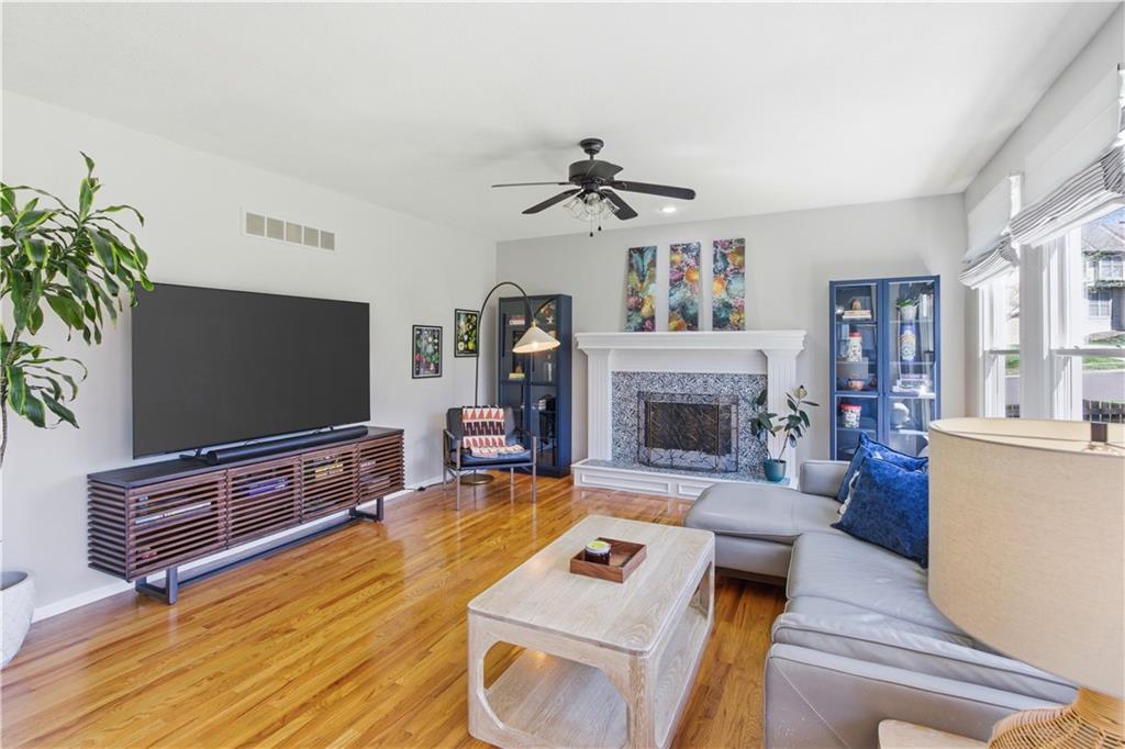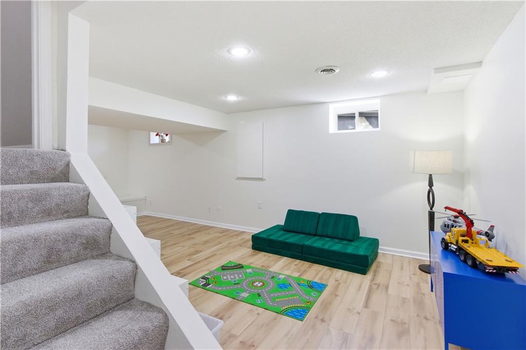 Stunning formal front living & dining room flows to light & bright great room/kitchen combo with floor to ceiling windows. Kitchen features stainless steel appliances, plenty of cabinets and counter space & island. NEW Fridge/Dishwasher. Great room overlooks lush, well manicured back yard. Half bath and laundry off main level and garage access. NEW Washer/dryer combo. The grand staircase leads you to the second floor bedroom level. Good sized rooms all with attached baths. Guest room off the front and bedrooms 2/3 with jack and jill style bath. AMAZING primary suite with large bedroom and leads to gorgeously renovated modern bathroom. Get ready in the mornings in style! HUGE walk in closet with beautiful built-ins. Sleek finished basement has many possibilities: office space, media room, play room. Half bath down here as well. Newer AC! Shaded fenced backyard with large patio. Neighborhood pool! Located in the award winning Olathe School District and so much more!