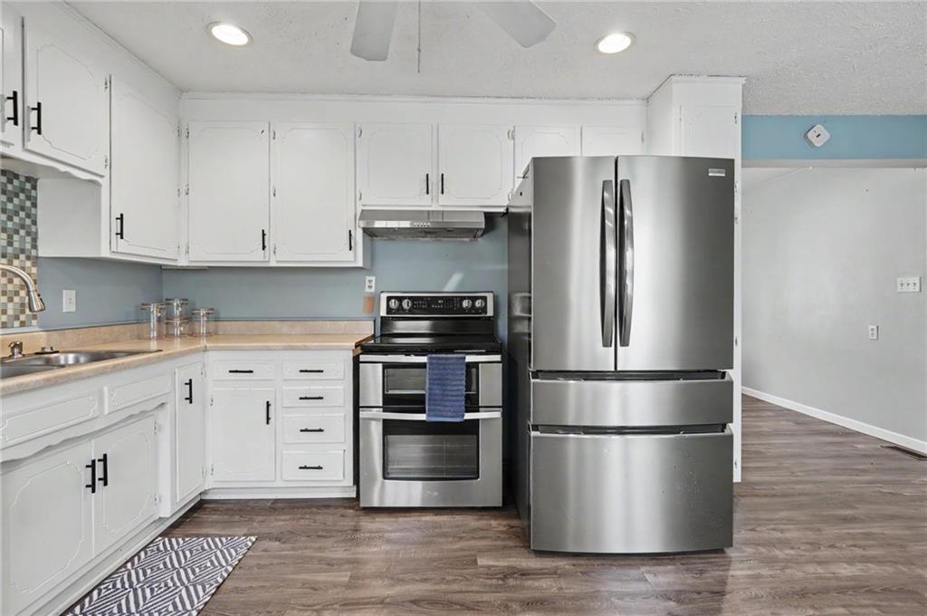 Charming and move-in ready 3-bedroom home in East Lawrence! This well-maintained property features updated LVT flooring, a bright and inviting living space, and an eat-in kitchen with stainless steel appliances and ample cabinet storage. Recent improvements include updated kitchen appliances, newer plumbing lines, sewer line replacement, a radon mitigation system, and added ceiling fans in the bedrooms. The spacious, fully fenced backyard offers great potential for outdoor living, pets, or gardening. Additional features include a 1-car garage and a 220V plug that can be used for an EV charger for added convenience. Ideally located near downtown Lawrence, KU, and local amenities, this home is a great opportunity for owner-occupants or investors alike.