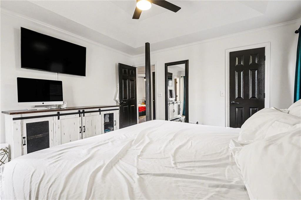 Discover this beautifully updated modern Craftsman farmhouse offering 4 bedrooms and 3 full baths in the highly desirable Persimmon Hill community. Situated on one of the largest privacy-fenced backyards on a cul-de-sac in the neighborhood, this home combines space, style, and functionality in an ideal location near Olathe West High School. Step inside to a bright, open-concept layout designed for both everyday living and entertaining. The spacious bedrooms provide comfort and privacy for everyone, while the lower level features a second living area—perfect for movie nights, game days, or a playroom. The kitchen has been thoughtfully upgraded with all-new granite countertops, a stunning island with waterfall edges, and modern finishes that elevate the heart of the home. Additional updates include sleek electric fireplaces and custom wire railings that add a contemporary touch throughout. This popular split-entry floor plan offers flexibility and flow, while the oversized, deep two-car garage provides ample room for vehicles, tools, toys, or even a workshop. Enjoy all the amenities Persimmon Hill has to offer, including multiple pools, tennis courts, walking trails, a lake, and greenway access. If you’re looking for a home that blends modern updates with practical living space, this one delivers. Schedule your showing today.