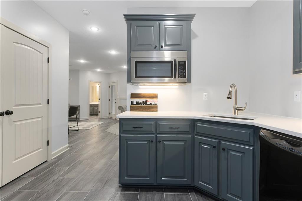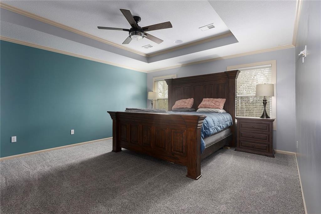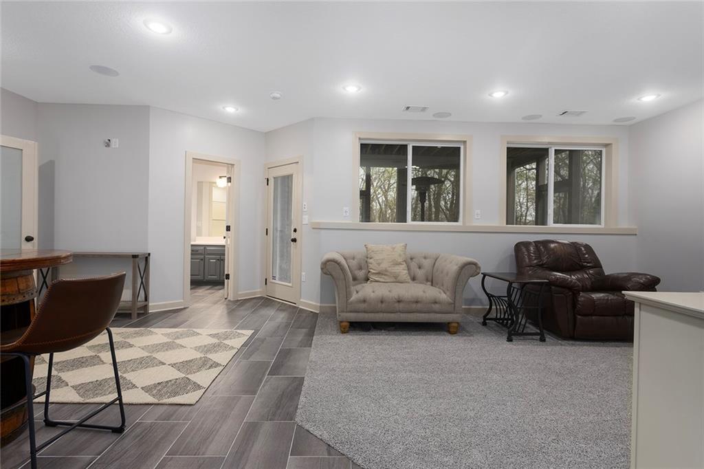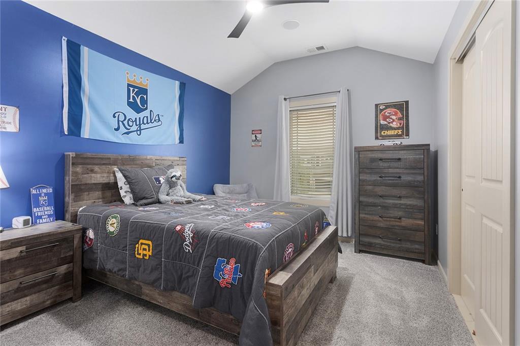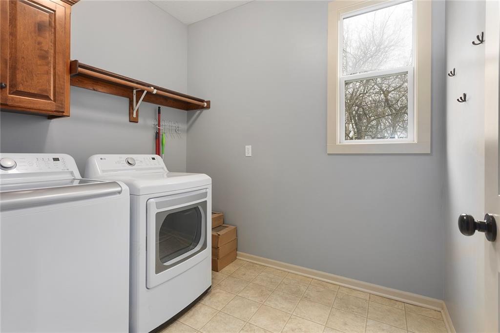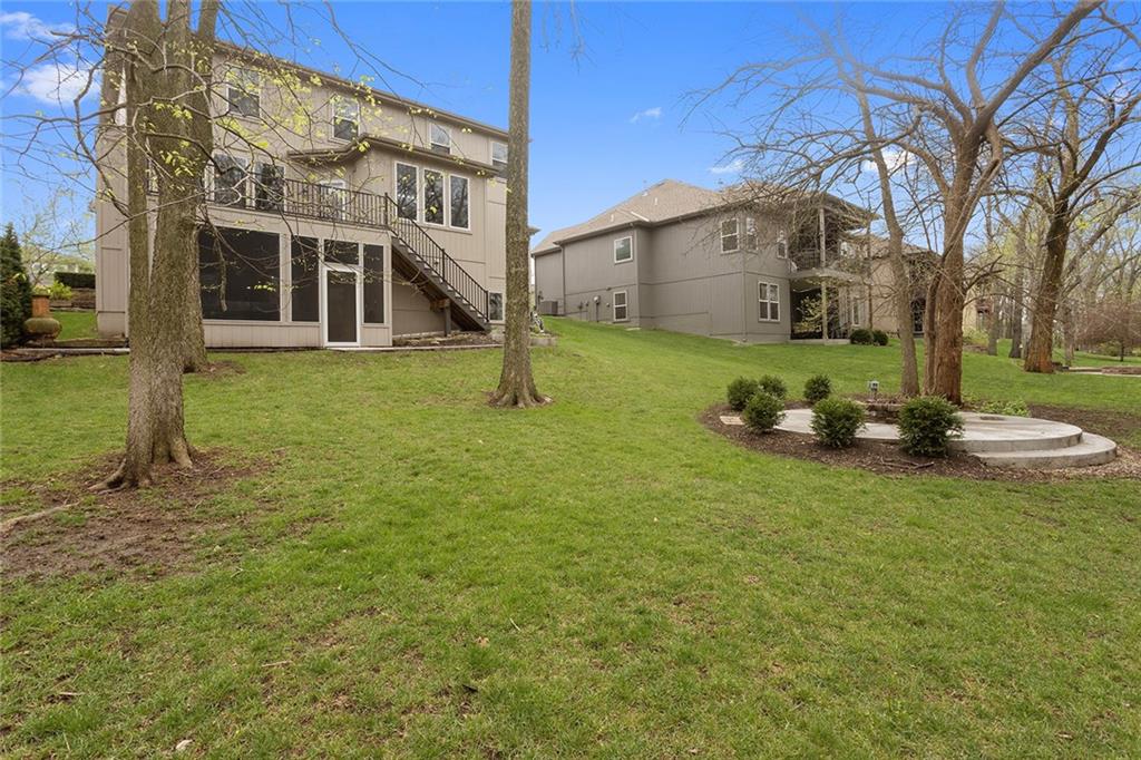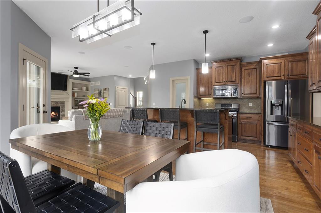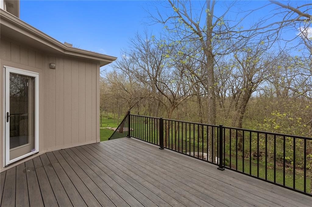 Welcome to this spacious and beautifully appointed two-story home in desirable South Olathe! Offering 5 bedrooms and 3.5 bathrooms, this home combines comfort, functionality, and scenic surroundings. The main level features stunning hard oak wood flooring and an abundance of large windows that fill the space with natural light while showcasing peaceful views of the wooded greenspace behind the home. The inviting living room centers around a cozy fireplace and flows seamlessly into the adjacent kitchen—perfect for both everyday living and entertaining. The kitchen is thoughtfully designed with beautiful cabinetry, granite countertops, and a convenient walk-in pantry. Just off the kitchen, you’ll find a dedicated laundry area for added ease and efficiency. A formal dining room sits at the front of the home, offering a more traditional space for gatherings and special occasions, complete with comfortable carpeting. Upstairs, the bedrooms feature plush carpeting and spacious bathrooms, creating comfortable retreats for family and guests alike. You’re sure to love the finished walkout basement, complete with a 5th bedroom, full bath, and a convenient kitchenette. This space lives like separate quarters—ideal for guests, extended stays, or multi-generational living—and opens directly to the patio, with a composite deck above for even more outdoor enjoyment. Step outside to enjoy the backyard firepit, perfect for relaxing evenings under the stars. Additional upgrades include whole-home sound wiring and programmable exterior holiday lighting for year-round convenience and charm. Don’t miss this opportunity to own a beautiful home on a well-kept lot in a sought-after location!