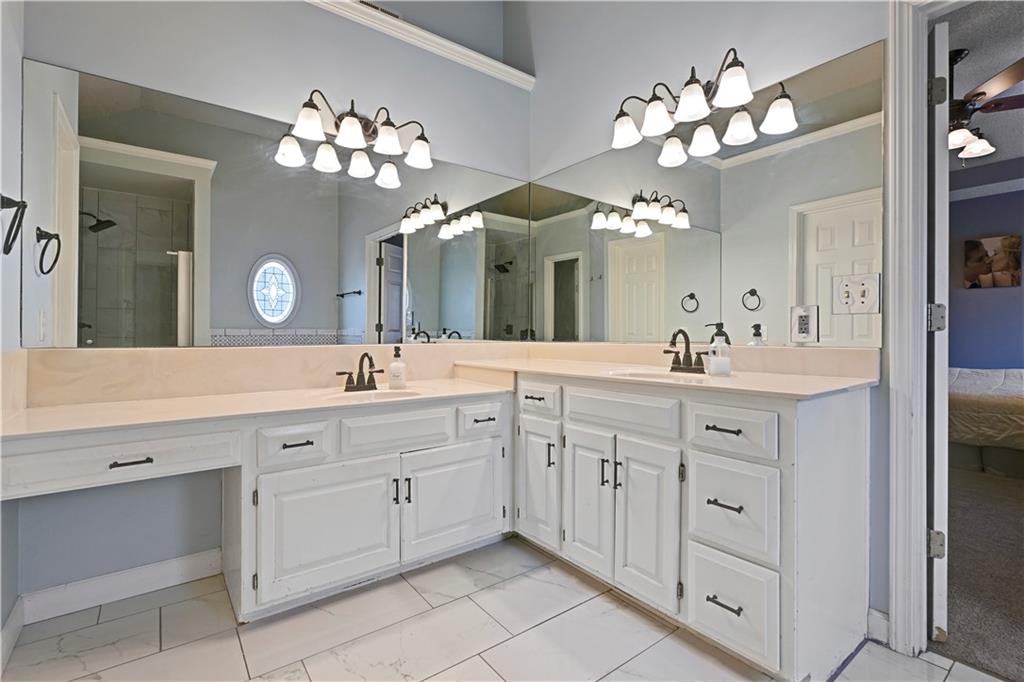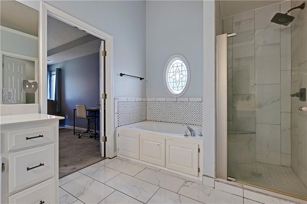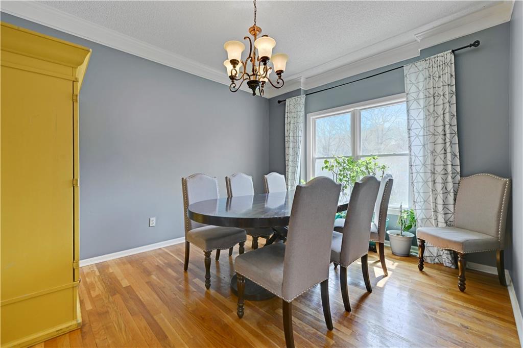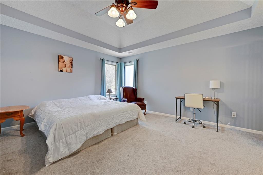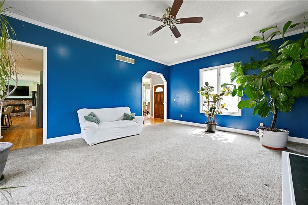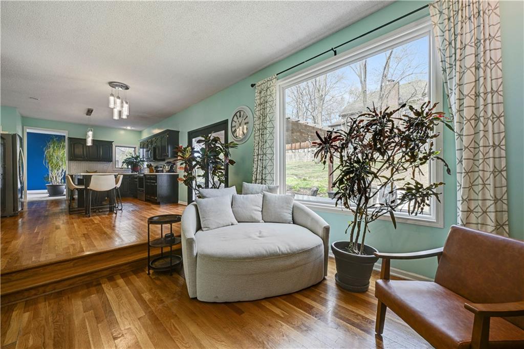 This spacious 4 bedroom, 3.1 bath home in Lenexa is ready for its next owner! Upon entry, you are welcomed by hardwood floors, a formal dining room, and a striking staircase that sets the tone for the space throughout. Just off the entry, the large front living room offers soaring ceilings, abundant natural light, and a beautiful fireplace with dramatic molding detail. Head into the kitchen and hearth room, where you will find painted cabinetry, quartz countertops, updated backsplash, stainless steel appliances, a large island with seating, and a second fireplace that creates a warm and inviting gathering space. The main level also features a half bath and easy access to the covered patio and backyard. Upstairs, the home offers generous bedroom space, including a spacious primary suite and well-sized secondary bedrooms. Head to the finished lower level for even more room to spread out, complete with a large rec room, kitchenette/bar area, full bath, and flexible space for movies, games, workouts, guests, or hobbies. Enjoy the outdoors from the covered paver patio overlooking the fenced backyard with mature trees and plenty of room to relax or entertain. Other features you will love include the distinctive front elevation, multiple living areas, hardwood floors through much of the main level, and a layout that offers both everyday comfort and great entertaining space.