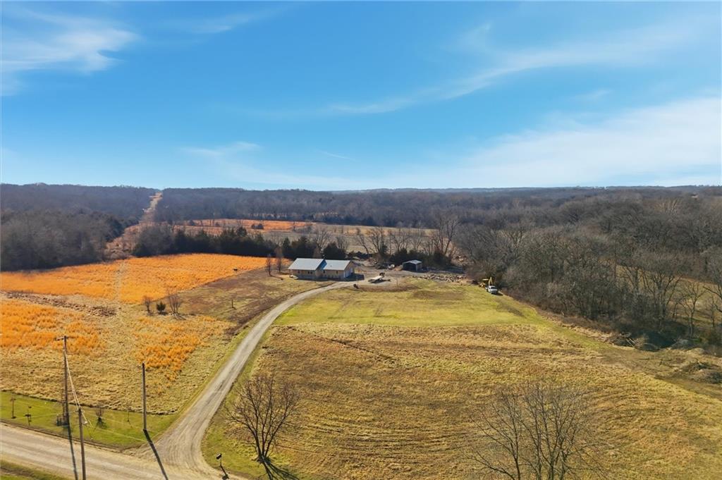 Welcome to tranquil country living on approximately 7± acres. Tucked toward the rear of the property, this spacious ranch-style home offers exceptional privacy and peaceful surroundings, accessed by a long private driveway. Boasting 2,400 square feet of well-planned living space, this 3-bedroom, 2-bath residence blends comfort, functionality, and quality craftsmanship throughout. Inside, you’ll find custom-built cabinetry and detailed baseboards that add warmth and character. The main level includes two generously sized bedrooms, a full bath, and a conveniently located laundry area designed for everyday ease. The finished basement extends the living space with an additional bedroom, full bath, and a large family room—ideal for entertaining, accommodating guests, or creating a cozy retreat. It also features a spacious storm shelter and a second laundry hookup for added convenience and flexibility. Constructed with durable metal siding and a metal roof, this home is built for longevity and low-maintenance living. The oversized, insulated attached garage offers an impressive 1,200 square feet—perfect for multiple vehicles, a workshop, hobbies, or additional storage. Enjoy relaxing on the covered front porch overlooking the expansive yard, or unwind on the composite back deck with scenic views of a mature tree line. Near the back of the property, a pond has already been excavated and is ready to be filled, providing a unique opportunity to create your own private water feature. Whether you’re looking for space to spread out, room to grow, or a peaceful place to call home, this remarkable property offers the perfect balance of privacy, comfort, and potential.