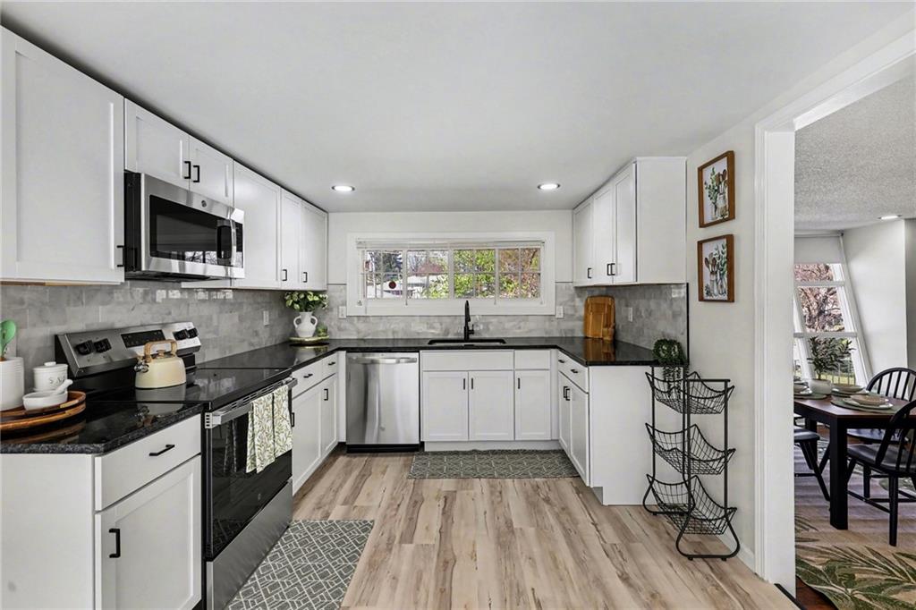 Unique and gorgeous! Fully updated home. This home is giving Mid-century meets the Jetson's. It has a unique, open and airy layout. Vaulted ceilings in the bedroom, windows with high interest that give this home a certain flare. Seller took a lot of care thinking of the buyer. Laundry room has been conveniently placed in a closet within the kitchen space. Added parking was made and everything is BRAND NEW. Come see it!
