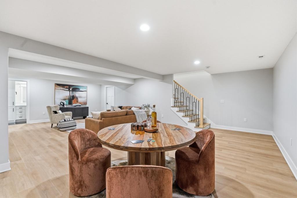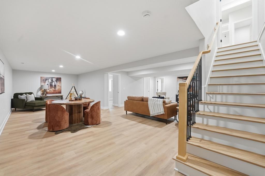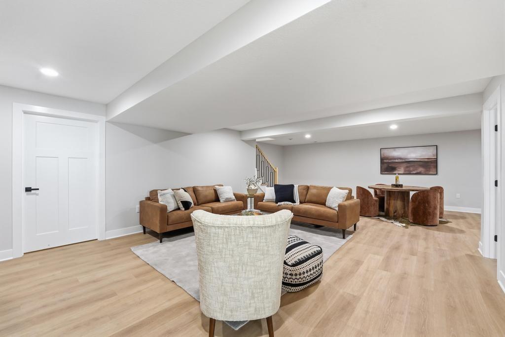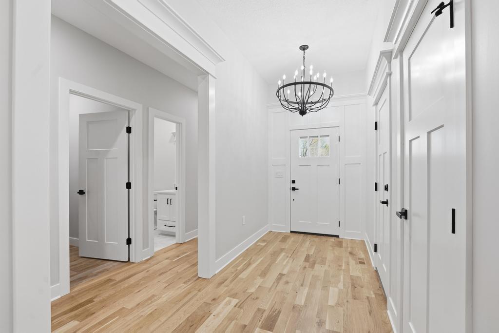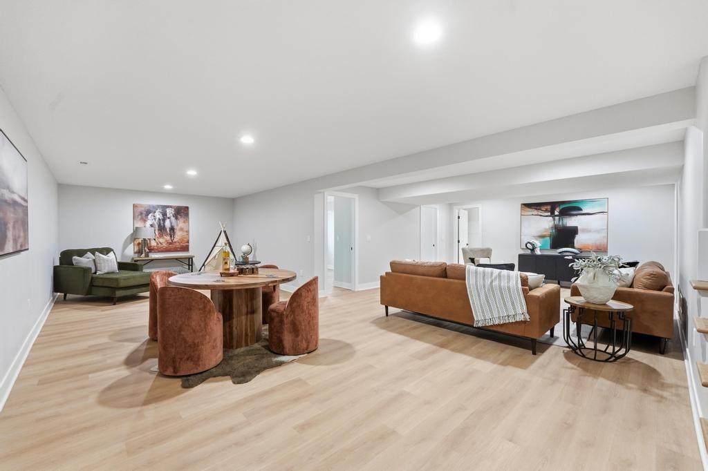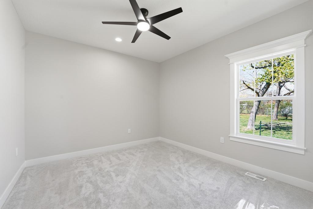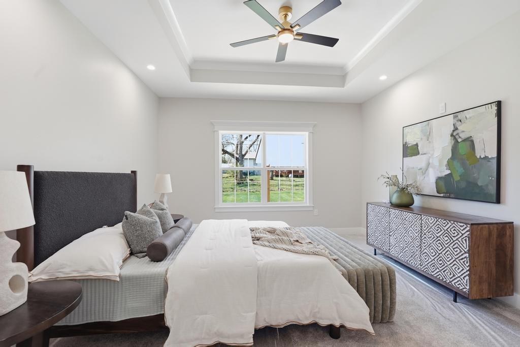 Step into refined, modern living in this brand-new, custom-built ranch-style home offering 5 bedrooms and 3 bathrooms with a fully finished basement. Designed with intention and built with pride, this home showcases exceptional craftsmanship and a layout that blends comfort, style, and functionality. The open-concept ranch design is enhanced by luxury vinyl plank flooring, plush carpeting in the bedrooms, and upscale finishes throughout. The kitchen is a true focal point, featuring quartz countertops, custom cabinetry, and premium appliances, perfect for everyday living and entertaining. The primary suite serves as a private retreat with a spacious walk-in closet that includes a vanity and a beautifully crafted custom-tiled shower with a rain showerhead. The finished basement provides additional living and entertaining space and is already prepped for a future bar or lounge area. Outside, you will enjoy fresh sod, landscaping, and convenient highway access. An oversized two-car garage with a commercial-grade opener adds both practicality and durability. Thoughtfully designed by a bui