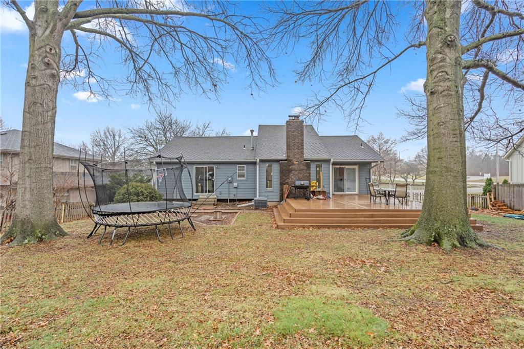 This 4-bed, 3-bath home in the coveted Lakewood community offers a blend of move-in ready comfort and resort-style living. It is situated on a generous 0.3-acre treed lot, providing a peaceful retreat with mature landscaping. The home features a modern kitchen with custom cabinetry and granite countertops. Enjoy spacious living areas, vaulted ceilings in the great room, two cozy fireplaces and the energy efficiency windows offers plenty of natural light. The main-floor includes the master suite with a walk-in closet and two additional bedrooms, kitchen, dining room, great room and access to the backyard. Downstairs you'll find a finished basement with the 4th bedroom, full bath, laundry room, family room and two car garage. Outside, relax on the private patio within a large, wood-fenced backyard perfect for pets or entertaining. The Lakewood Lifestyle: Access to private lakes for no-wake boating (pontoons, kayaks, paddleboards), fishing, and a sandy swim beach. Also enjoy tennis courts, pickleball, sand volleyball courts, swimming pools and much more. This home is located within the highly-rated Lee's Summit School District
