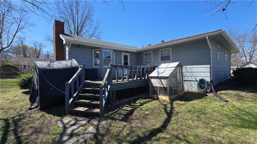 What a rare find! This comfortable home has 4 bedrooms and 2 & 1/2 bathrooms on over half an acre in Cameron, MO! The large living room with a brick wood-burning fireplace surrounded by wood built-in storage has plenty of windows for natural light, a wet bar with lots of pantry space, and a walkout to the back deck. The kitchen boasts granite countertops and a passthrough window to the living room. Full dining room area and full laundry room with wash sink on either side of the kitchen. The large primary bedroom has a full bathroom and walk-in closet. Three full bedrooms (one with a half bath) and a full bathroom are just down the hall. Fifth non-conforming bedroom and finished study/storage area downstairs. Spacious two-car garage on the basement level. Large 30'x30' detached garage with two 8't x 12'w doors give you plenty of space for vehicles, projects, and more! The large backyard has a tree with a swing and is fully fenced in. Plenty of space for entertaining on the back deck while the family plays! Don't miss this chance to own a home with this much to offer!