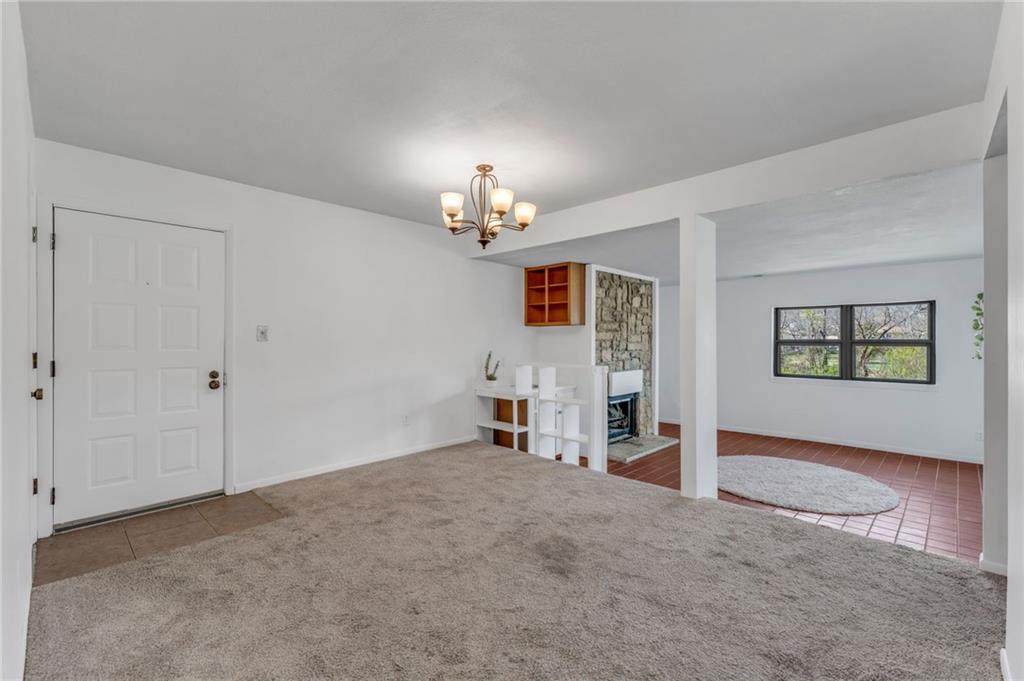 Located a short distance west of KU in the desirable West Meadows Condominiums complex is this 2-bedroom, 2-bathroom condo. Conveniently located on the bus route, this property is nicely tucked back in the northernmost building in the complex. A COVERED parking space is included with this offering. Stainless steel appliances included, plus the washer and dryer. The living area has tiled floors and a stone fireplace. The sunroom has tile floors and offers an abundance of natural light. Primary suite with attached bathroom.HOA covers exterior building(studs out) maintenance, lawn care, snow removal, and access to the swimming pool. You keep your insurance costs low as you only need to insure from the walls in (studs in)!