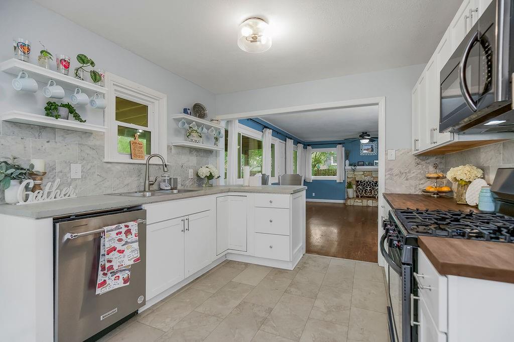Gorgeous, updated mid-century gem in Waldo! This charming home features a living room with gleaming hardwoods and a cedar closet right at the entry. You'll also find a cozy family room down a few steps with a fireplace and stylish shiplap accents. The bright white kitchen is a showstopper with a gas range, Carrara marble backsplash, LVP flooring, and butcher block and concrete countertops. New fixtures throughout give the home a fresh, modern feel. Right off the kitchen is a convenient half bath. You’ll love the gleaming walnut hardwood floors, spacious bedrooms, and an updated full bath with tile flooring. Custom built-ins for tons of storage! Lower level unfinished with laundry. New gutters and A/C! Fenced yard with a covered patio for enjoying the seasons. All of this in an unbeatable location—just steps from the Trolley Trail, walking distance to South Oak Park, and minutes from shopping, dining, and the vibrant Waldo entertainment district. This one checks all the boxes—come see it before it’s gone!