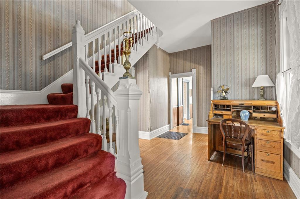 Step into timeless elegance with this beautifully preserved historic home, where character and craftsmanship shine at every turn. From the moment you arrive, the inviting large front porch welcomes you—perfect for relaxing mornings or evening gatherings. Inside, you’ll find soaring tall ceilings, expansive windows that flood the home with natural light, and stunning original woodworking throughout. Rich details like stained glass windows, transom windows, and original built-ins highlight the home’s authentic charm, while classic fixtures add to its warm, nostalgic feel. This spacious home features four bedrooms and one and a half baths, including a charming clawfoot tub that adds a touch of vintage luxury. A large sunroom at the back of the home offers the perfect space to unwind year-round. Situated on a desirable corner lot, the property boasts a generous backyard filled with character—featuring original brick from Pine Street, five varieties of rose bushes, beautiful hydrangeas, mature fruit trees, and stately pine trees. A detached rear garage provides additional convenience and storage. Ideally located near the University of Central Missouri and Whiteman Air Force Base, this home offers both historic charm and modern-day accessibility. With its abundance of original features and unique details, this one-of-a-kind property is truly a rare find.
