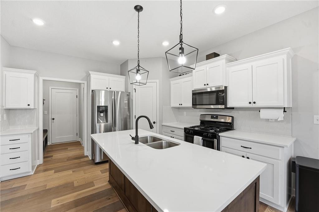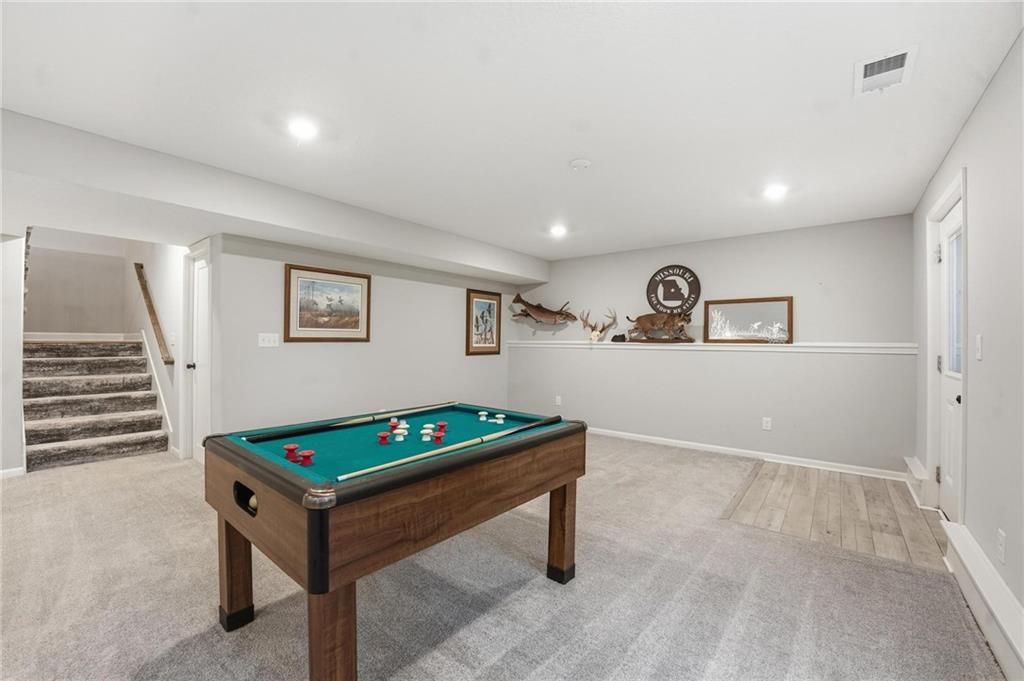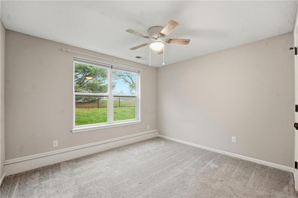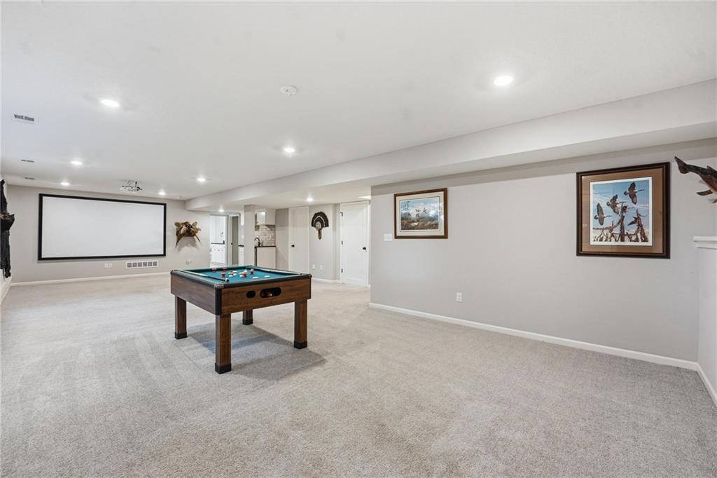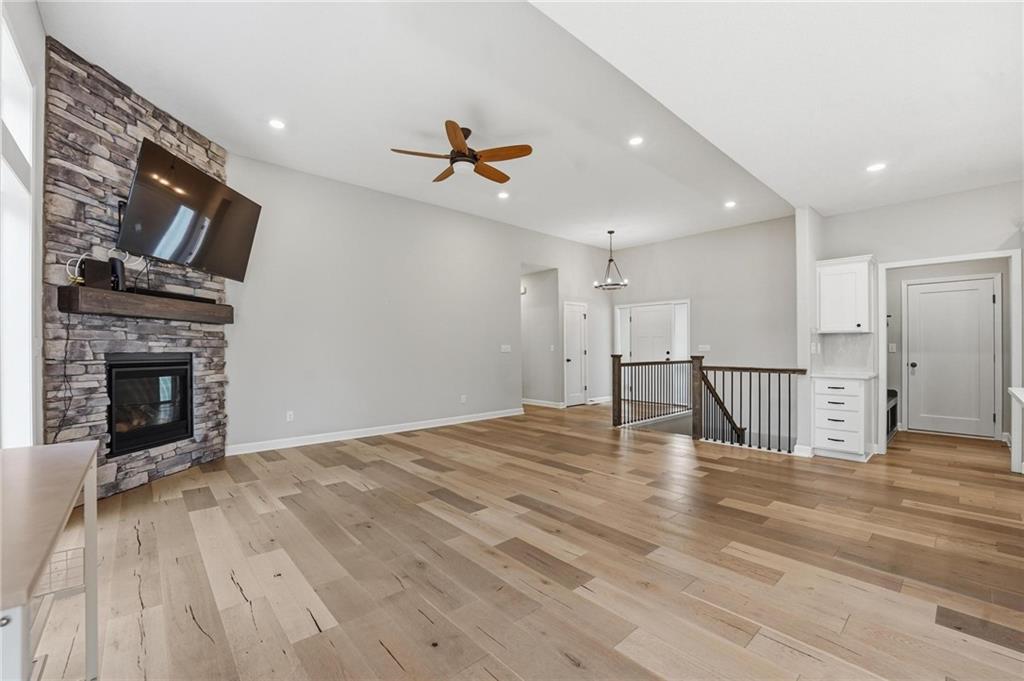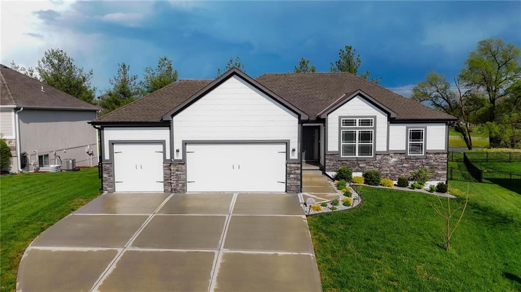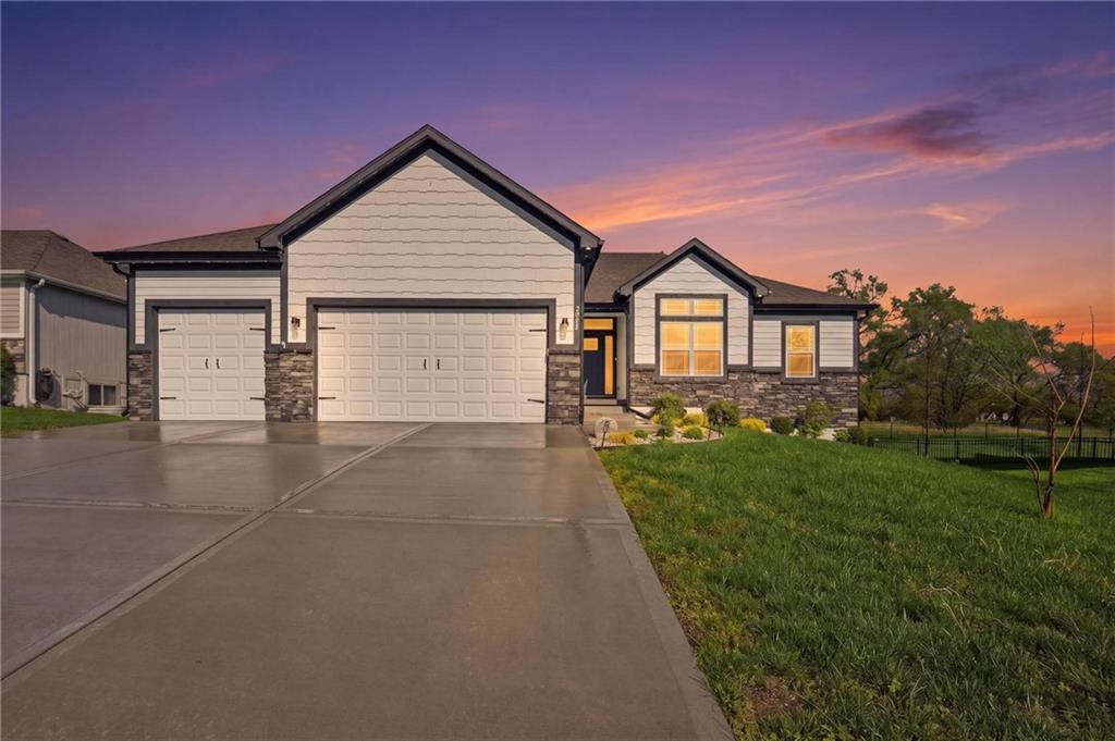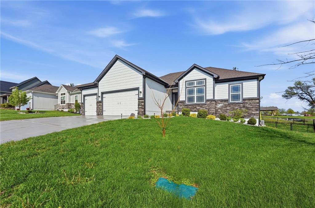 Welcome to 2209 Greenfield Court, a move-in-ready 5-bedroom home in The Meadows at Greenfield that allows you to skip the typical new construction to-do list and start enjoying your home from day one. As you walk in, you are greeted by an open layout filled with natural light and clean, modern finishes. The living room centers around a stone fireplace and flows seamlessly into the kitchen with granite counters, an island, and pantry, giving you a space that works just as well for everyday living as it does for hosting. Your main level primary suite provides a private retreat with a walk-in closet and a fully tiled walk-in shower. Two additional bedrooms and laundry on the main level give you the convenience of single-level living. The finished walk-out basement gives you flexibility with a large entertainment space, wet bar, projector setup, two additional bedrooms, a full bath, plus storage and a workshop area. Whether you need space for guests, hobbies, or everyday living, you have it here. Outside, you get more than just a backyard. You have a newly installed wrought iron fence that keeps the space open while adding security. You can enjoy evenings on the patio and fire pit area, and the added concrete pad gives you flexibility for a shed or additional use. The professionally landscaped flower beds with stone borders, decorative white and blue rock, and landscape lighting create a clean, finished look, while the color programmable permanent soffit lighting allows you to customize the exterior year-round. Inside and out, the details have already been handled for you, including blinds, a new fence and garage door openers saving you time and additional expense after closing. Located on a quiet cul-de-sac in a neighborhood with a community pool, walking trails, and fishing ponds, you also have convenient access to schools, parks, and highways.
