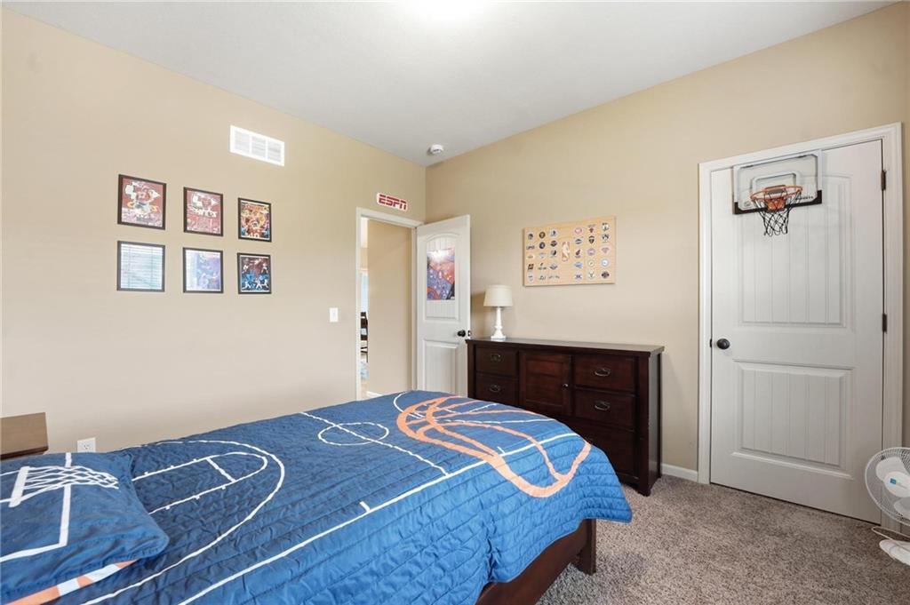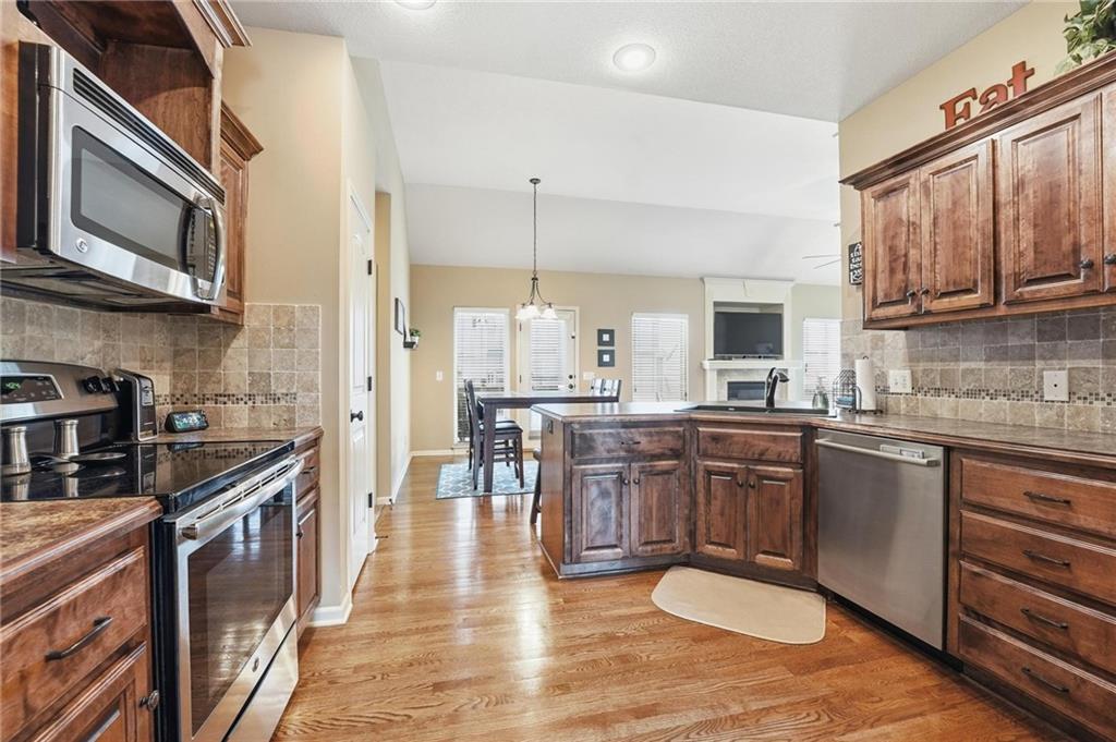 Fresh interior & exterior paint April 2026! Exceptional home on a great lot with lush, green lawn. Level drive leads to oversized 2 car garage. Home is bright & open with welcoming entry, vaulted ceilings & open plan. This home offers a great flex space that is perfect for home office or formal dining room. Great Room has fireplace, extensive trim and is open to dining area with hardwood floor, that is open to the large kitchen! Primary suite is on one side of the home with large bedroom, walkin closet & private bath with tile floor, jetted tub, separate shower, double vanity! 2 additional bedrooms are on the opposite side of the home with great closet space & a hall bath with tub/shower. Lower level family room walks out to the fantastic backyard. 3rd FULL bathroom in lower level along with a 4th bedroom. Off main level is a fantastic covered deck with ceiling fan, steps down to the backyard.