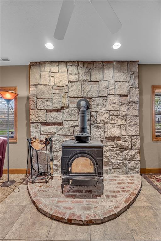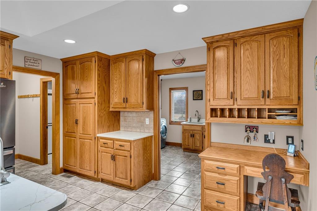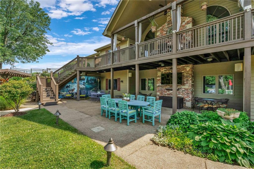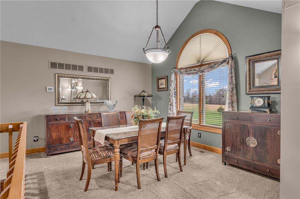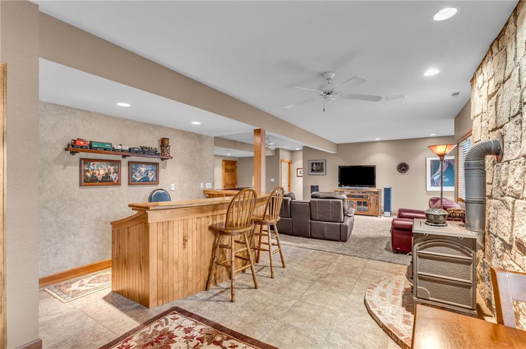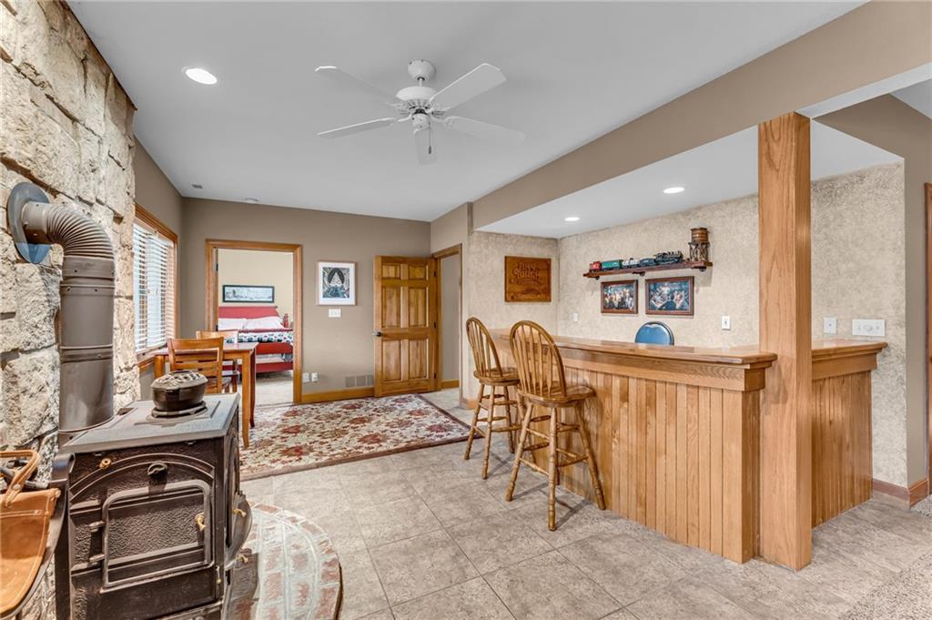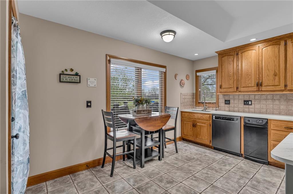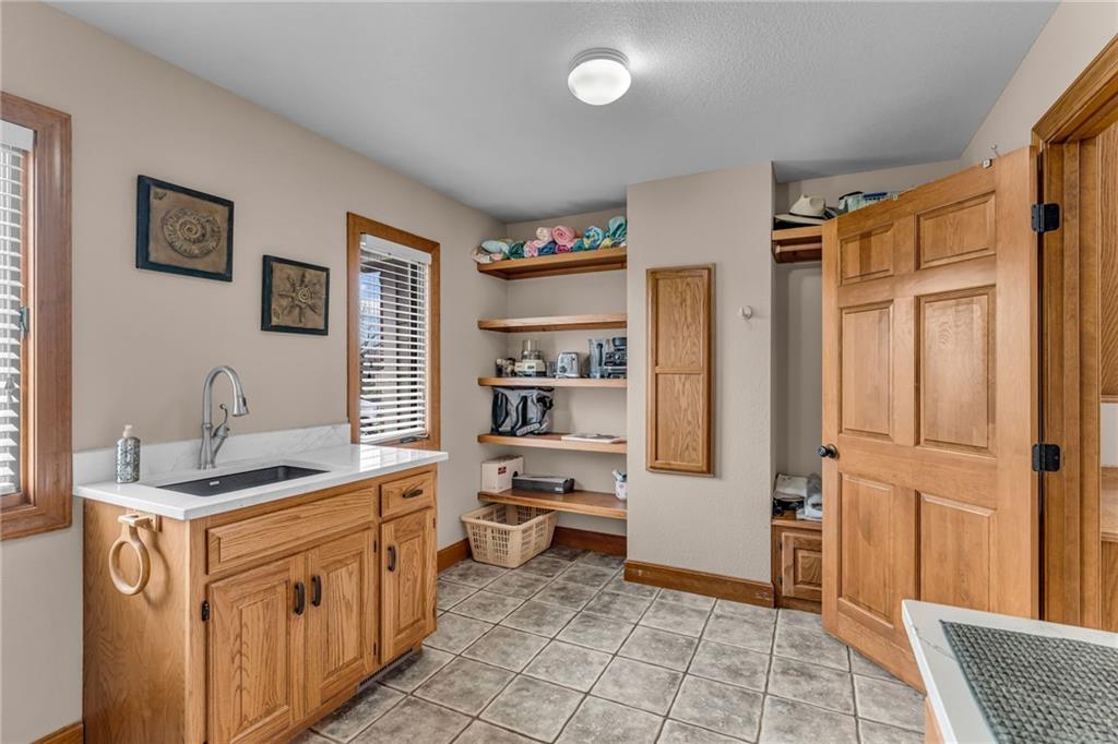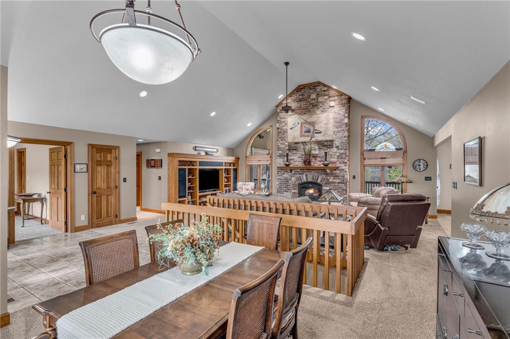 Enjoy peaceful country living just 10 minutes from Lawrence on 5+ acres with hard surface road access. This meticulously maintained one-owner home features soaring ceilings, new quartz countertops, an updated primary bathroom with a jacuzzi tub, and a nearly new HVAC system. Convenient main-level living, with a primary suite, office, kitchen, dining, living, laundry, mudroom and two additional bathrooms on the main. The walk-out basement offers additional living space with two oversized bedrooms, each with its own private bathroom, a wet bar, cozy wood-burning stove and rec room. Outdoor amenities extend the living space and include a large covered deck, covered patio, in-ground swimming pool complete with all the toys, bathroom, cabana bar with grill, stocked pond, and a 28' x 36' shop that could be used as a 3rd car garage. The property also features low-maintenance landscaping and one acre of the property fully fenced A rare opportunity to enjoy space, privacy, and convenience just minutes from town!!