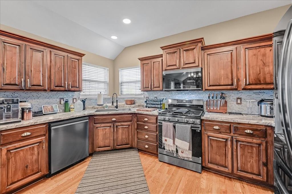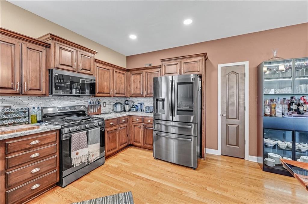 This charming 4 bedroom, 3 bath home is a must see – with a perfect blend of comfort, convenience, and small-town appeal! Step inside to a functional layout, warm and inviting living room with valued ceilings and fireplace, dining area and kitchen that offers plenty of cabinet and counter space, a pantry and newer appliances that stay! The bedrooms are well-sized and versatile, perfect for accommodating family, guests, or even a home office. The private primary suite is spacious, has a separate shower and jetted tub, dual sink vanity and walk in closet. The lower level features a newly remodeled family room/media room, the 4th bedroom, 3rd full bathroom and a walk in theft and fire-resistant storm shelter/safe room. Plenty of room for storage, toys or a workshop in the 3-car garage with bonus room. Outside, you’ll find a spacious, fully fenced in yard with plenty of room to enjoy the outdoors—whether it’s gardening, playing catch or hosting get-togethers. The deck has been refinished and features a new high-wind gazebo. Don’t miss your chance to own a piece of Tonganoxie—schedule your showing at 218 S Melrose today!
