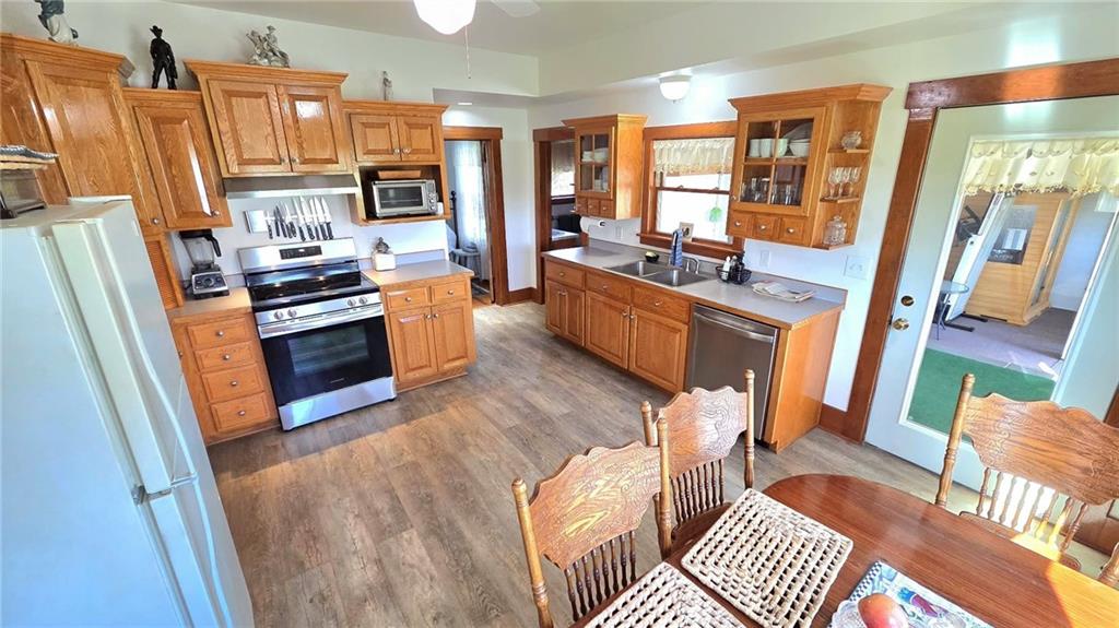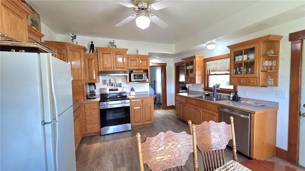 Dead End Road, Picture Perfect 35 Acre M/L Mapleton, KS Homestead! This meticulously maintained 3-bed, 2-bath home is impressive from the moment you pull up. The home has been preserved, maintaining much of the beautiful woodwork throughout, while modern upgrades make this home inviting and comfortable. The home has received upgrades, including newer vinyl exterior windows, complete custom solid oak kitchen cabinetry & countertops. Just off the kitchen is a grand dining room featuring original French doors. Additionally, this home features a huge sunroom, multiple large closets, and an unfinished partial basement. As you enter the front door, you will be greeted by the beautiful, original staircase banister that leads you to 2 bedrooms and 1 bath, featuring a beautiful, primitive claw-foot tub. Need room for additional guests? This property features a detached guest quarters. This is nicely finished, featuring heating and cooling. Multiple storage sheds and parking places exist in the 2 detached garages and one turn-of-the-century impressive old school hay barn. The hay barn upstairs is in very nice condition and is currently used for storage. The land is equally impressive, featuring lush cool-season grasses, and barbed wire fencing for horses, 4 ponds throughout the property providing excellent year-round livestock water source, or the finisher enthusiast. The south side of the land rolls slightly downhill with thick brush and trees providing an excellent white-tailed hunting experience. This is a rate property as it has had all the work done. *Furnace is propane, propane is owned.