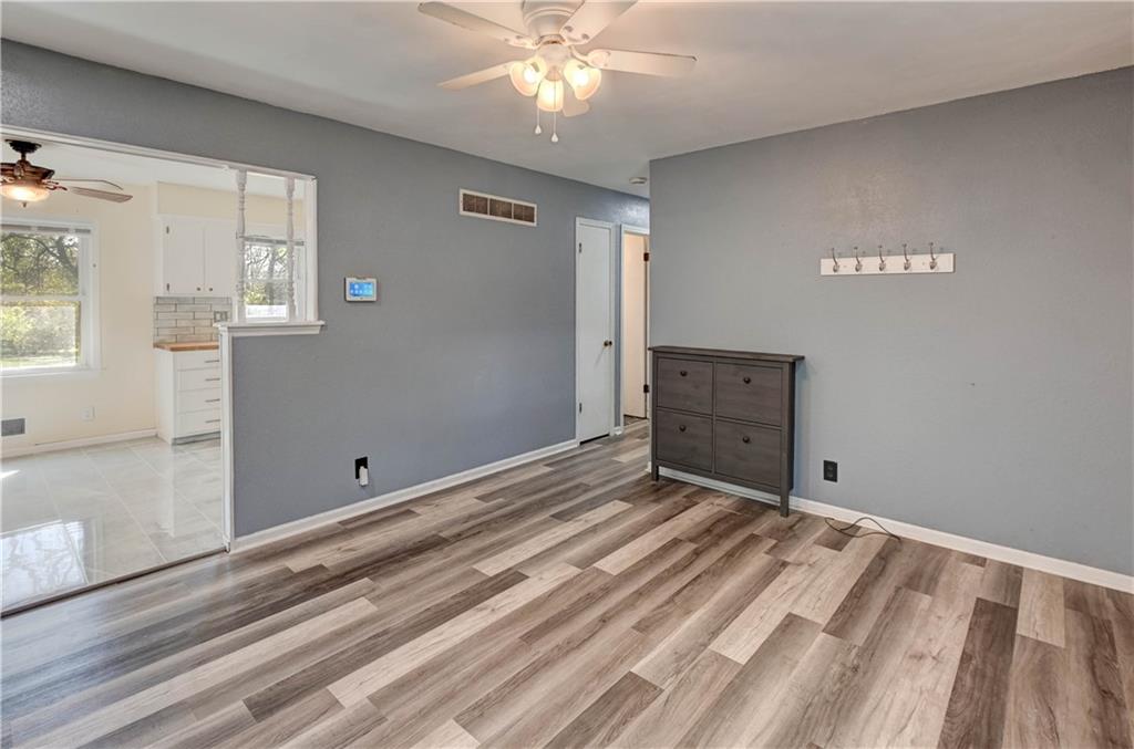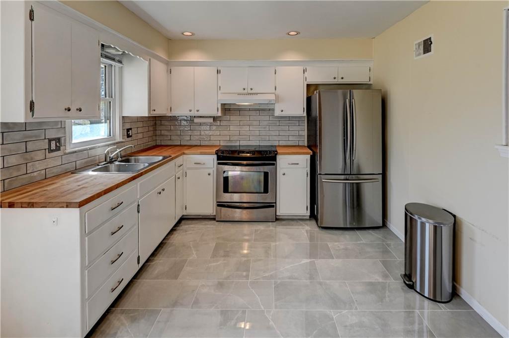 Welcome to this charming and well-maintained 2-bedroom, 1 full bath ranch home, perfectly situated in a quiet, inviting neighborhood. Offering both comfort and thoughtful upgrades, this home is move-in ready and ideal for easy living. Inside, you’ll find a bright and refreshed interior featuring new paint throughout and a beautifully updated living room with a freshly scraped and repainted ceiling, enhanced by modern cam lighting for a warm, welcoming feel. The kitchen has been tastefully upgraded with a new porcelain floor, stylish ceramic backsplash, butcher block countertops, upgraded appliances, a new sink, faucet, and garbage disposal—perfect for both everyday living and entertaining. Both bedrooms offer comfort and functionality, complete with upgraded ceiling fans. The bathrooms have also seen improvements, including new flooring, a new vanity topped with a marble countertop, and the addition of a half window to bring in extra natural light. There is also a bonus room, great for a 3rd non-conforming bedroom, office or workout room. Step outside to enjoy a large, fully fenced backyard—ideal for entertaining, pets, or simply relaxing in your own private space. A convenient storage shed provides ample room for yard tools and equipment. The property has also been enhanced with additional attic insulation for improved efficiency, along with added fill dirt on two sides for better grading and usability. For added convenience, the home includes a washer, dryer, and all kitchen appliances, including the refrigerator. A one-car garage completes this fantastic property. This thoughtfully updated home combines charm, practicality, and value—ready for its next owner to enjoy.