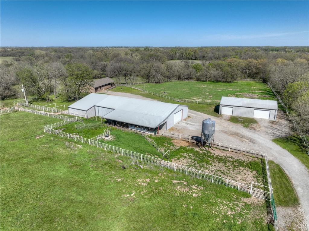 Follow paved roads to this peaceful country homestead & farm near Girard, KS. Over 13 acres with expansive out buildings/shops, piped fencing and room to spread out and enjoy the beauty of nature and abundant wildlife! The 3 bedroom/1.5 bath home boasts an open concept living/dining and kitchen area. A separate spacious family room features beautiful window light and leads to a lower level bedroom that also serves as a safe-room/storm shelter below ground level. Primary bedroom features a huge walk-in closet while bathroom provides a spacious walk-in style shower. The living and dining room areas open to a huge covered deck area that provides a scenic view to enjoy! A ramp wraps around to front of home for ease of entrance & exit to deck area. Steps from the home sits a 120 x 50 ft shop with concrete floors, heat & air, electricity, restroom and multiple overhead doors. For livestock or utility storage, there is also a 40 x 60 building and cattle shed and waterers, plus pipe-fenced pasture! This exclusive location provides privacy and practicality, and allows for profitability, as well! Set your private tour right away!