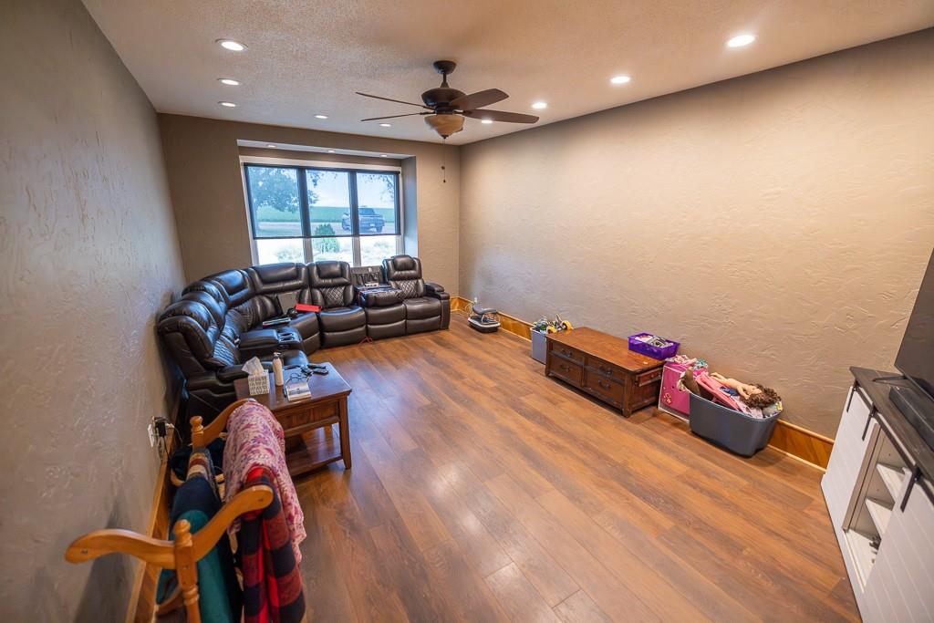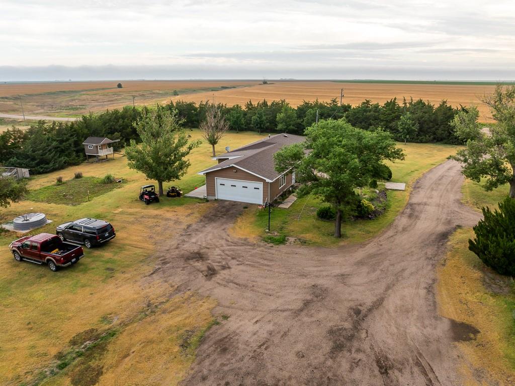 This beautiful 48 +/- acre property brings a lot to the table! Located just west of the golf course outside of Hoxie, KS, it features a sizable 5 bed, 2 bath ranch farmhouse. You can watch the sun rise from your front porch. The main floor includes 2 bedrooms, 1 bathroom, a generous living area and kitchen, large dining room, and a laundry/mudroom off of the oversized 2 car garage. The full finished basement includes 3 bedrooms, a full bathroom, utility closet, a large living space, and lots of storage. The property also includes an additional 864 square foot outbuilding that is half garage and half climate controlled entertaining space, perfect for a mancave. A chicken coop and children's playhouse make up the remaining structures on the property. The property itself is beautiful and loaded with opportunity. A large established windbreak surrounds the north and west sides of the home, offering the much needed protection from the Kansas winds. Additionally, oak and cottonwood trees are strategically placed throughout the farm, giving it a charming, park-like feel. There are several water hydrants sprinkled throughout the 5 acre homesite that would allow several locations for a large garden. The remaining 43 acres are made up of fenced grass that are perfect for your horses, steers, or other livestock options. There’s a good well and heated water tank just off of the corral.