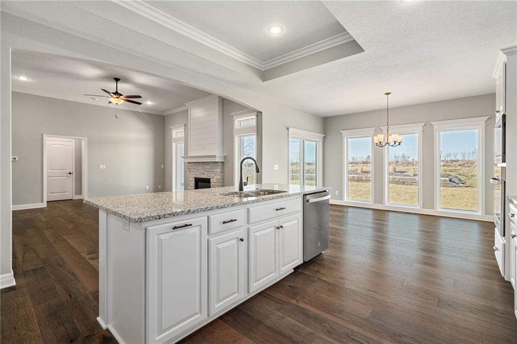 Welcome to Sara’s Meadow, where quality craftsmanship meets modern comfort in The Peyton Expanded by Hoffmann Custom Homes — a beautiful Reverse 1.5 Story designed to impress from the moment you step inside. This spacious home offers 3 generous bedrooms and 2 full baths on the main level, featuring open sight lines, soaring ceilings, and wide-plank engineered hardwood floors that create a bright, airy feel throughout. The kitchen is as stunning as it is functional, showcasing granite countertops, bold black hardware and fixtures, a cooktop range, and a wall oven with built-in microwave — all designed for effortless cooking and entertaining. In the great room, an inviting neutral-toned fireplace with enameled wood trim becomes the perfect focal point, adding warmth and style while anchoring the space in an eye-catching way. The primary suite feels like a true retreat with double vanities, a soaker tub, and convenient access to the main-level laundry room. Two additional main-floor bedrooms feature walk-in closets and share a full bath — perfect for guests, kids, or a home office setup. Downstairs, the finished lower level expands your living space with a large rec room, wet bar, 4th bedroom, and a 3rd full bath — ideal for entertaining, hosting guests, or creating the ultimate movie/game room. Built for modern living and long-term peace of mind, this home includes 2x6 exterior wall construction, is prewired for solar panels, offers EV charging receptacle compatibility, energy-efficient features, and comes backed by a 10-year structural warranty. This beautifully built home is complete and ready for immediate purchase — come see why "The Peyton Expanded" is one you won’t want to miss! Home is currently under construction. Photos are from a previous Payton Expanded model and are for reference purposes only. No sign is posted at this time due to ongoing construction and large equipment onsite. Estimated completion is September 2026.