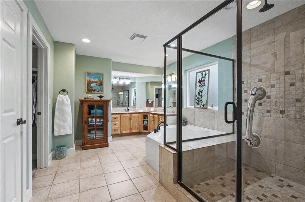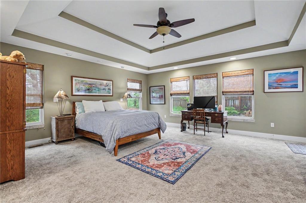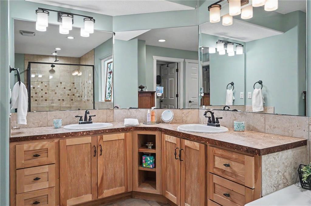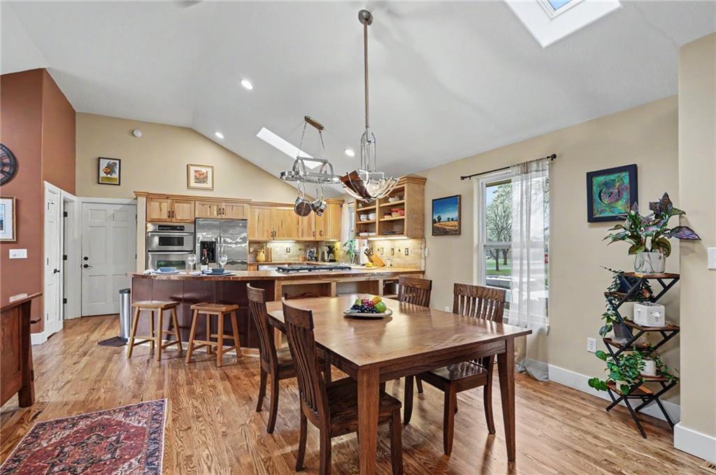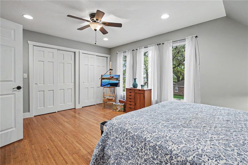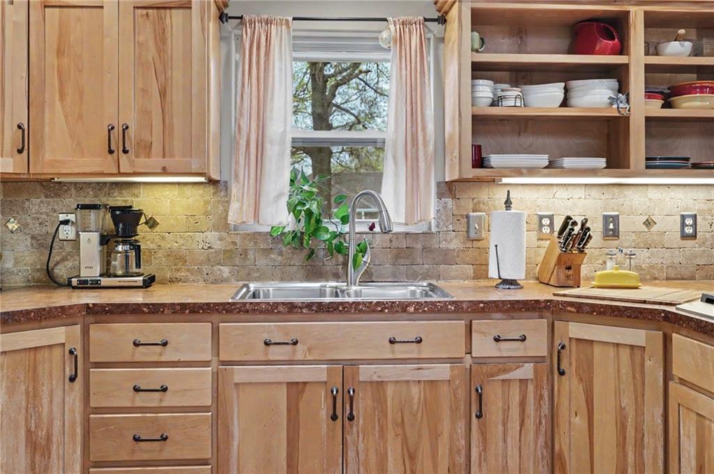 You will never see another home like this one. The sellers orchestrated a $130k remodel when they moved in. They removed the kitchen/living room ceiling and vaulted it up to the skylights. Main level primary bedroom is probably the largest in this price range with a backyard water feature right outside the window on SW corner going out to Lawrence Country Club golf course. 2BR on the main level and 2 upstairs. Basement is partially finished and used as a wine room with outside stairwell with plenty of space to finish off however you wish. Home sits on a corner lot with direct access to the backyard that is an oasis. Come check out this very unique home.