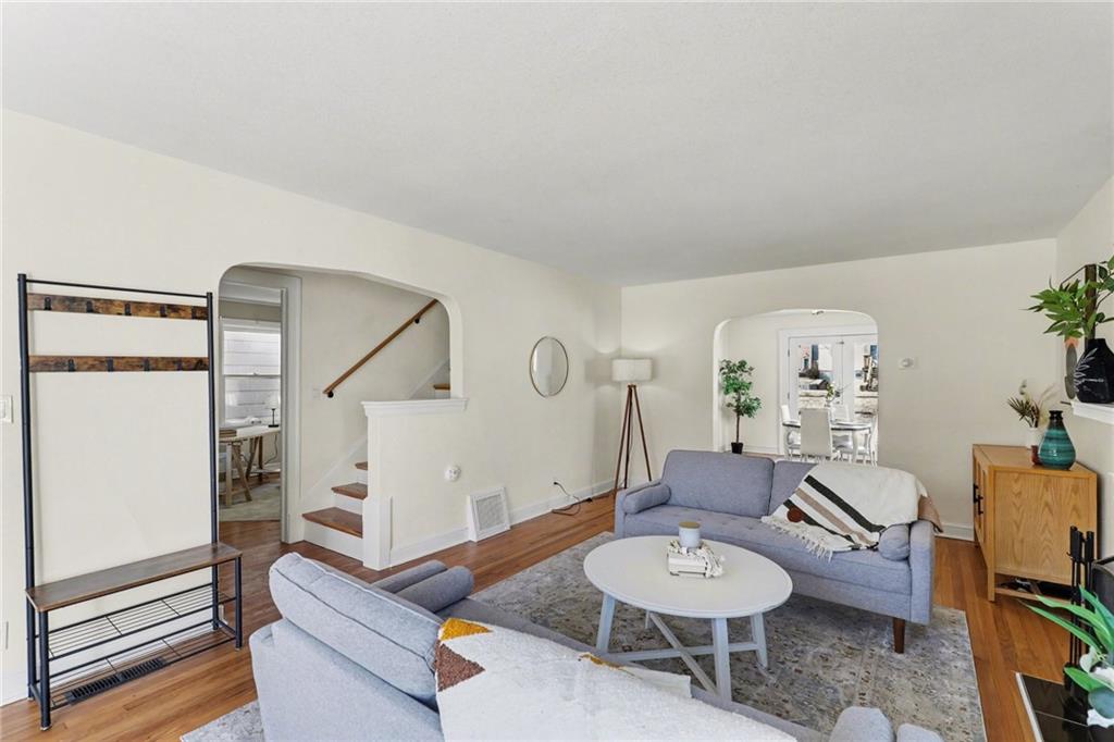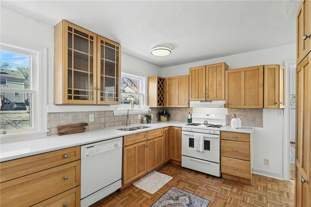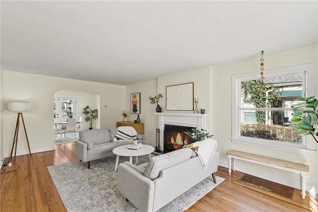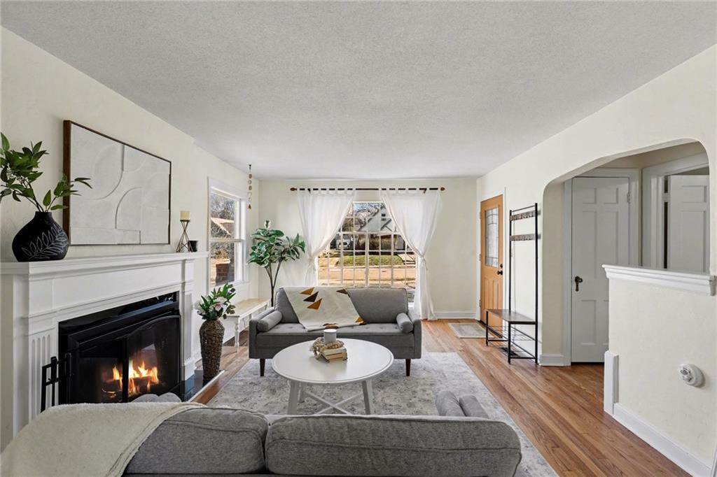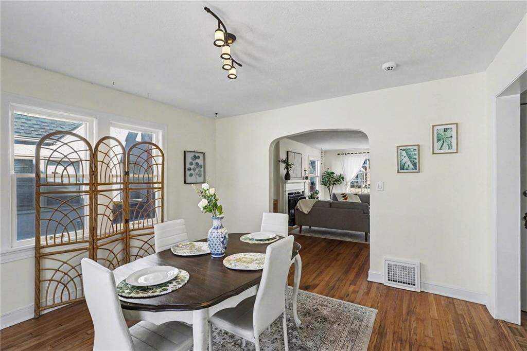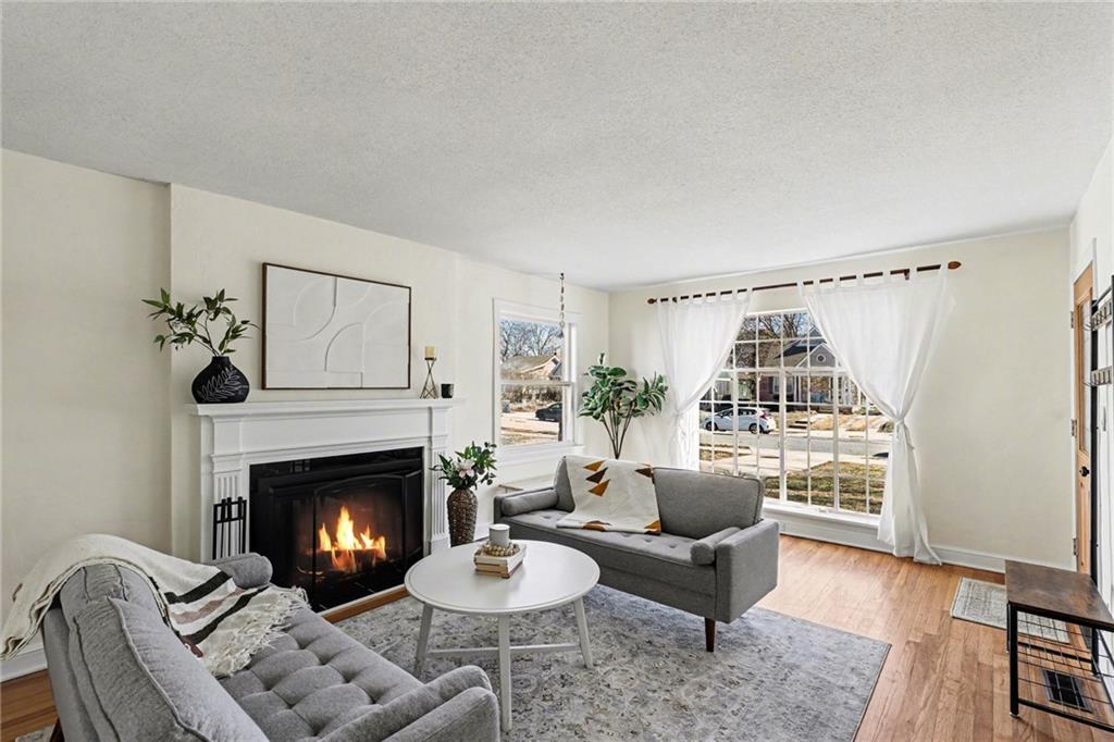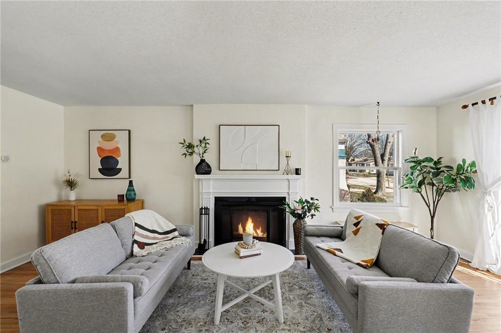7234 Baltimore St • 1.5-Story Tudor/Traditional • Solar panels • 3BR/2BA • 1,659 SF • Classic 1937 charm meets clean updates in this brick-and-trim Tudor with a covered front porch and dormer details. Inside, the living room features hardwood floors, a large picture window for natural light, and a masonry fireplace. The kitchen offers ample cabinetry, white counters, tile backsplash, dishwasher, and a gas range, with room for a breakfast nook. Two refreshed bathrooms showcase modern fixtures and standout tilework. Main-floor bedroom plus additional bedrooms upstairs; huge walk in closet! Full stone/rock basement provides storage and utility space. BRAND NEW HVAC. BRAND NEW ROOF! Outdoor living includes a patio/deck, and parking is served by a shared driveway with carport-style covered parking. SOLAR PANELS installed and offset electric costs. Convenient access to Ward Parkway and W Gregory Blvd. The seller has completed a long list of repairs and inspection findings.