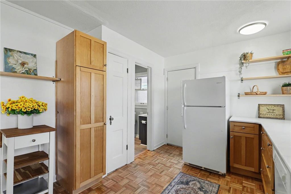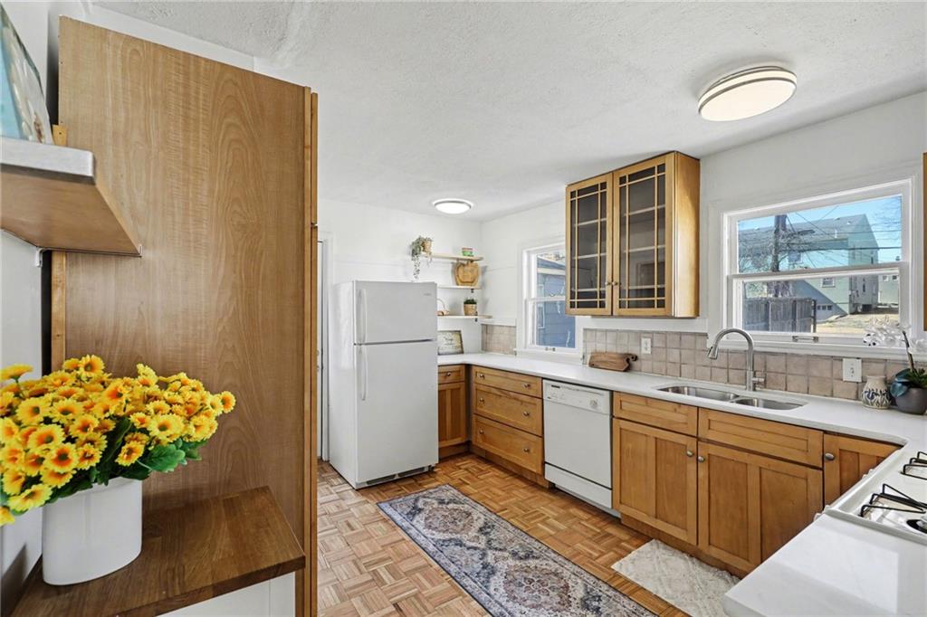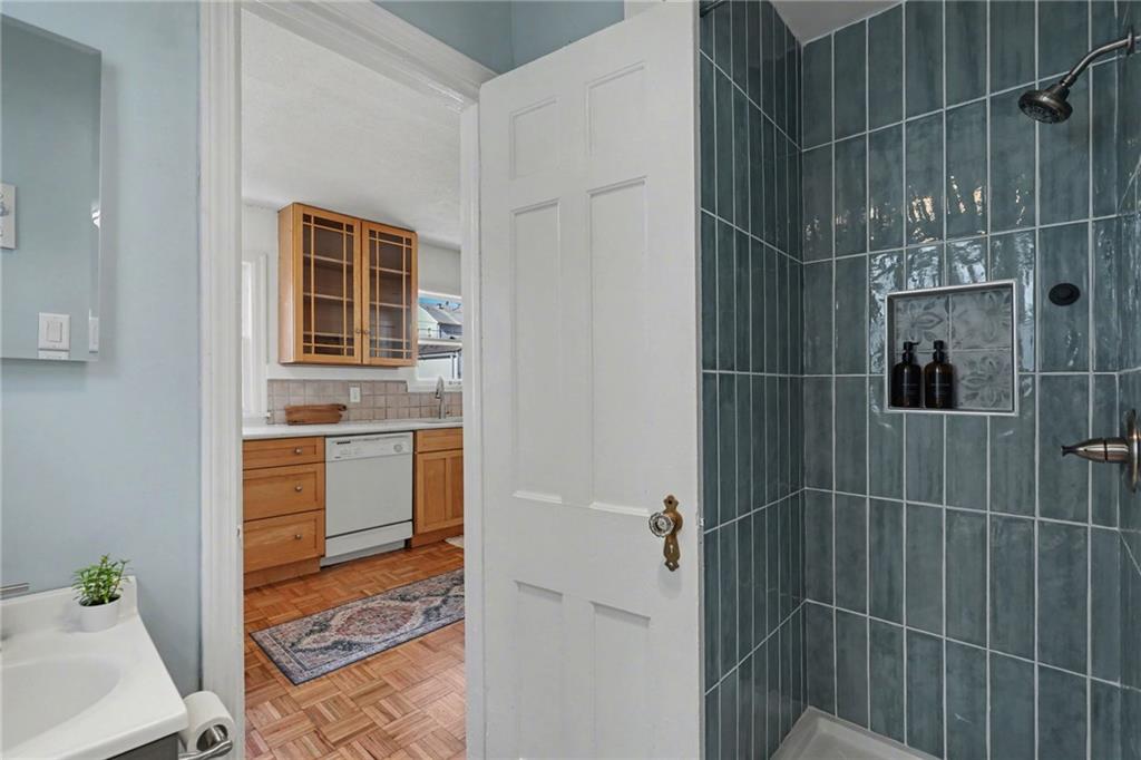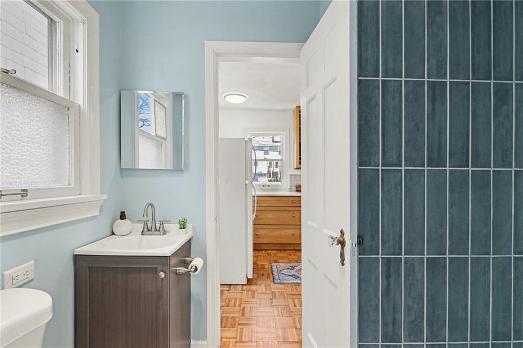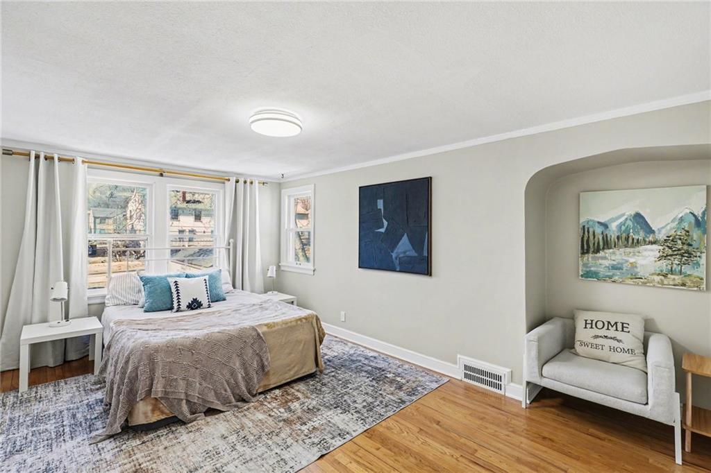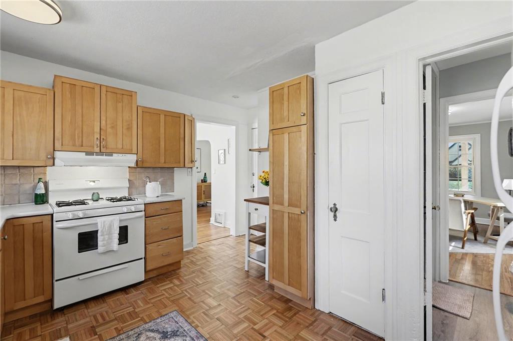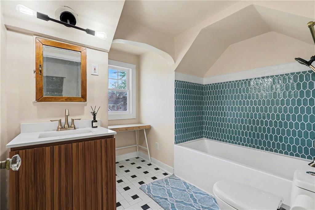 7234 Baltimore St • 1.5-Story Tudor/Traditional • Solar panels • 3BR/2BA • 1,659 SF • Classic 1937 charm meets clean updates in this brick-and-trim Tudor with a covered front porch and dormer details. Inside, the living room features hardwood floors, a large picture window for natural light, and a masonry fireplace. The kitchen offers ample cabinetry, white counters, tile backsplash, dishwasher, and a gas range, with room for a breakfast nook. Two refreshed bathrooms showcase modern fixtures and standout tilework. Main-floor bedroom plus additional bedrooms upstairs; huge walk in closet! Full stone/rock basement provides storage and utility space. BRAND NEW HVAC. BRAND NEW ROOF! Outdoor living includes a patio/deck, and parking is served by a shared driveway with carport-style covered parking. SOLAR PANELS installed and offset electric costs. Convenient access to Ward Parkway and W Gregory Blvd. The seller has completed a long list of repairs and inspection findings.
